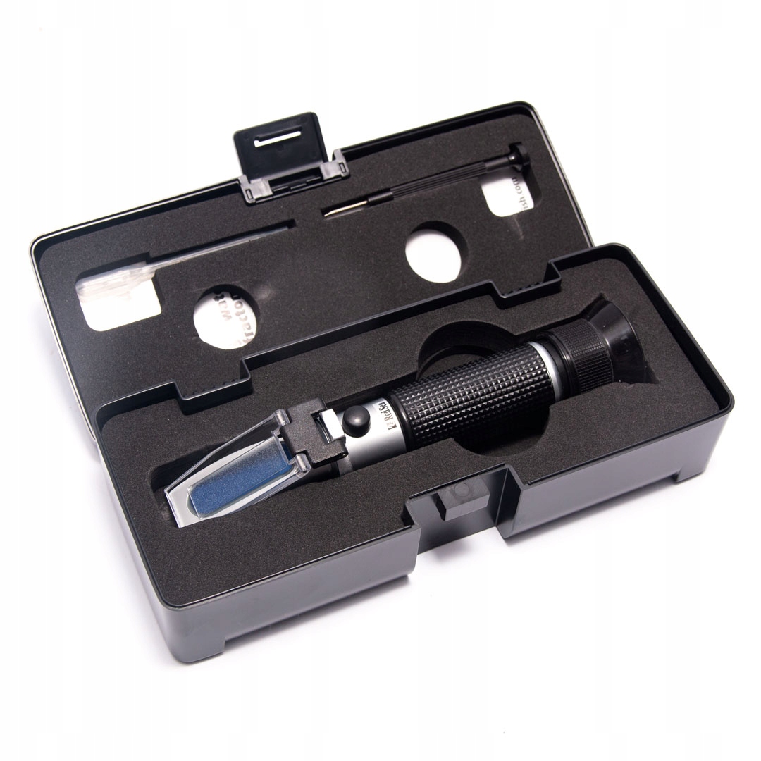 Принцип роботи заснований на показнику заломлення, який безпосередньо залежить від концентрації солі у воді. Результат тесту відразу видно на вагах. Оскільки солоність залежить від температури, рефрактометр повністю компенсує показання.