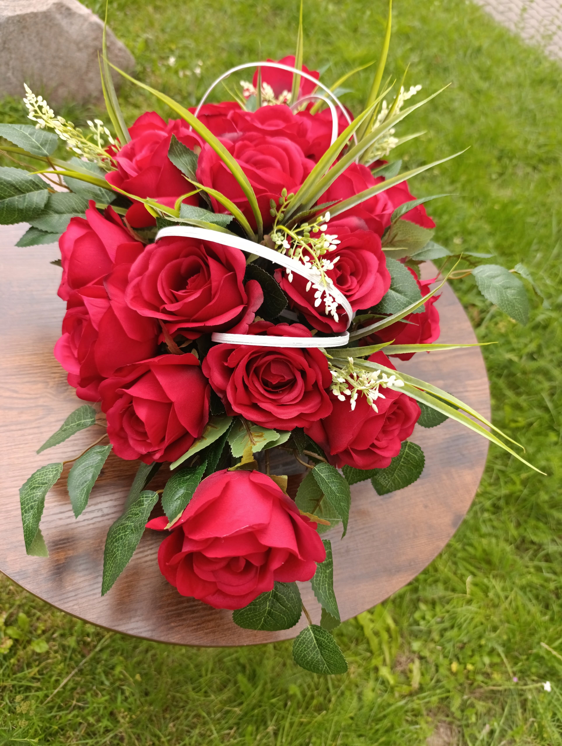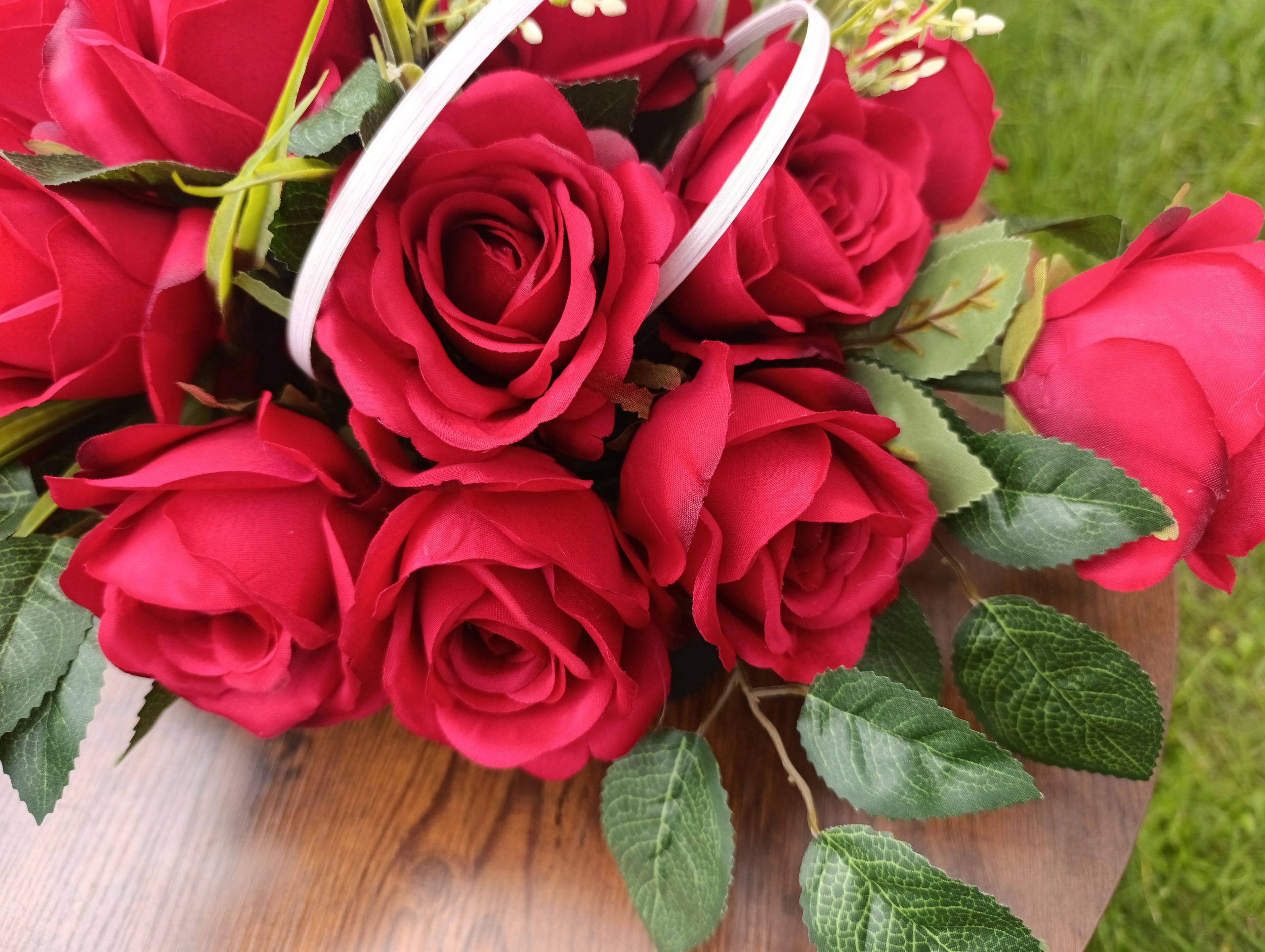 Червоні букетні троянди Преміум троянди Штучні квіти для могили кладовища