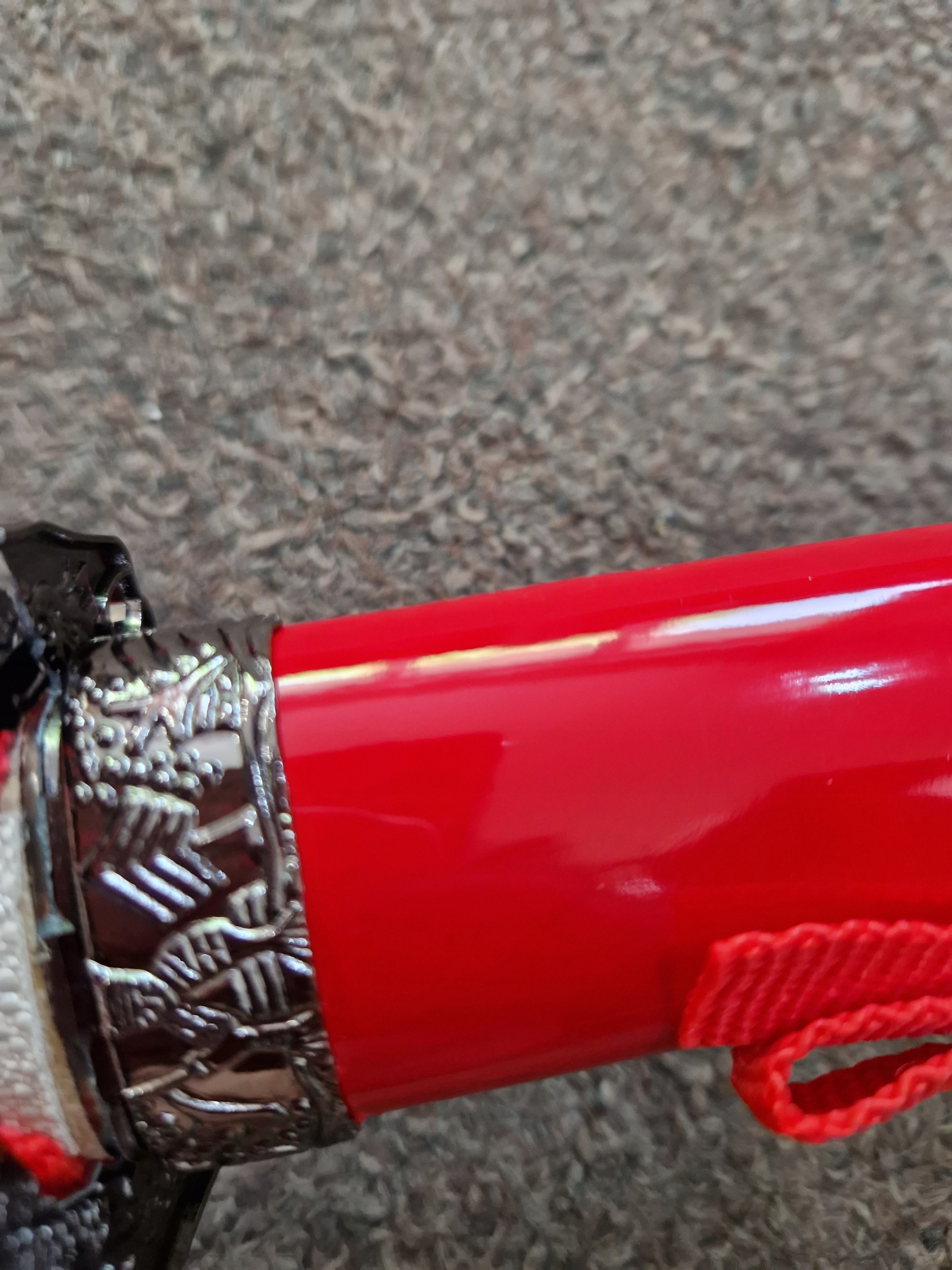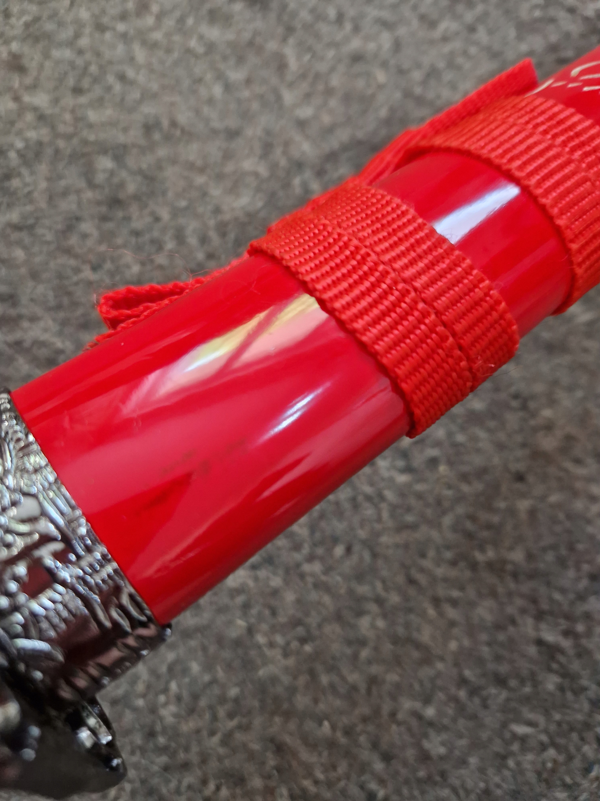 Опис пошкоджень: знебарвлення на піхві, розтріскування та подряпини на піхву, зламаний цуба вакізаші