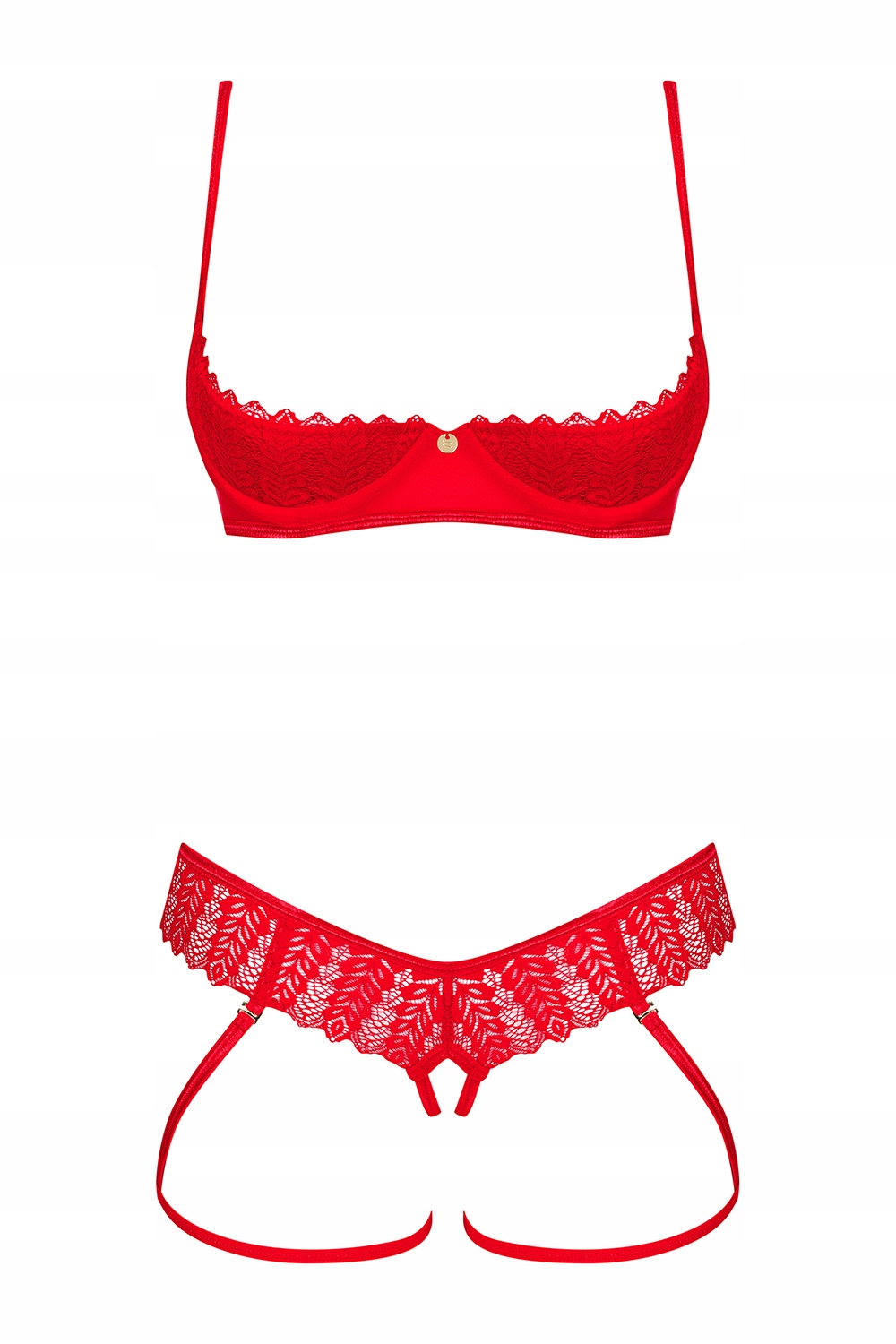 Комплект нічного одягу Obsessive Ingridia з 2 предметів, червоний XL/2XL, напівбюстгальтер + стрінги
