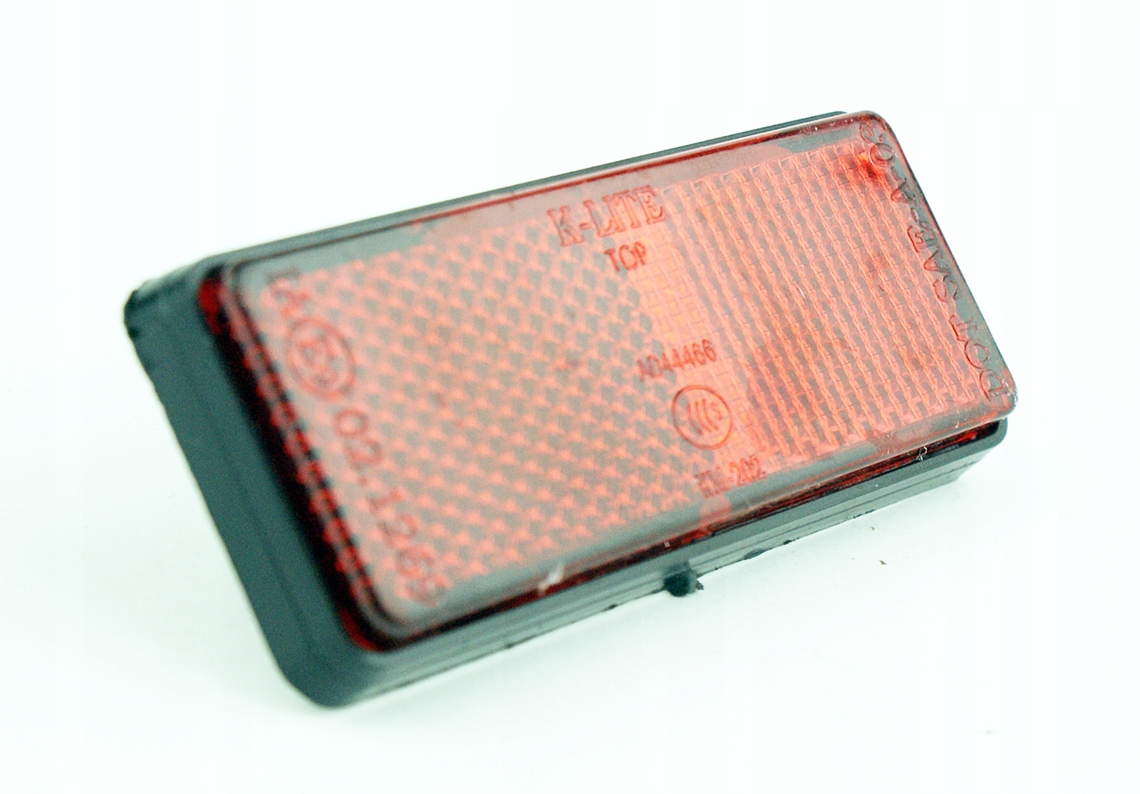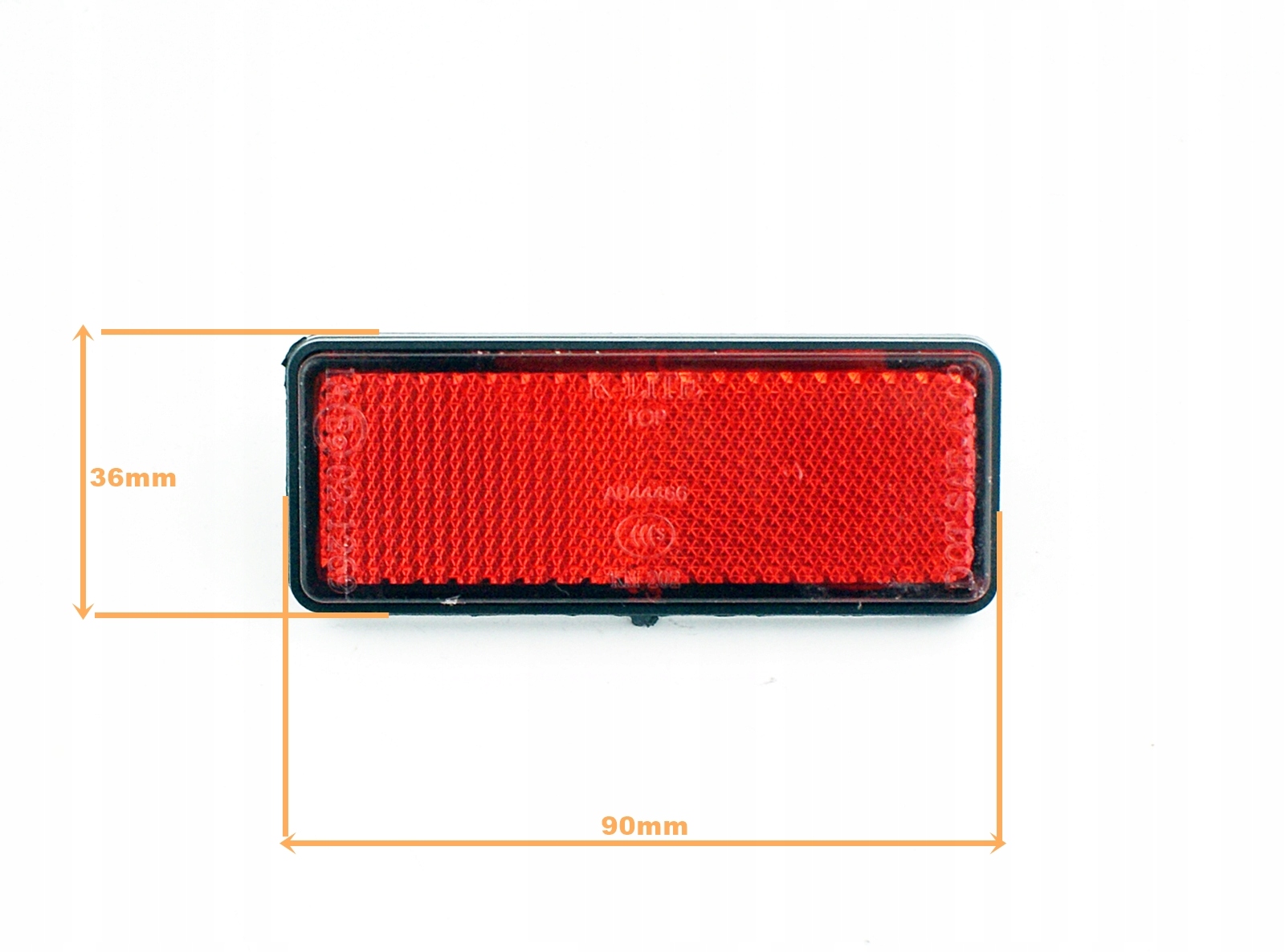 Універсальний прямокутний червоний світловідбивач з допуском, призначений для мотоциклів, мопедів і квадроциклів.
