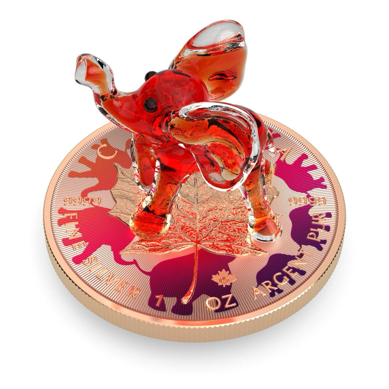 ЧЕРВОНИЙ СЛОН ЧЕРВОНИЙ СЛОН КЛЕНОВИЙ ЛИСТ КАНАДА МУРАНСЬКЕ СКЛО 2022 1 $