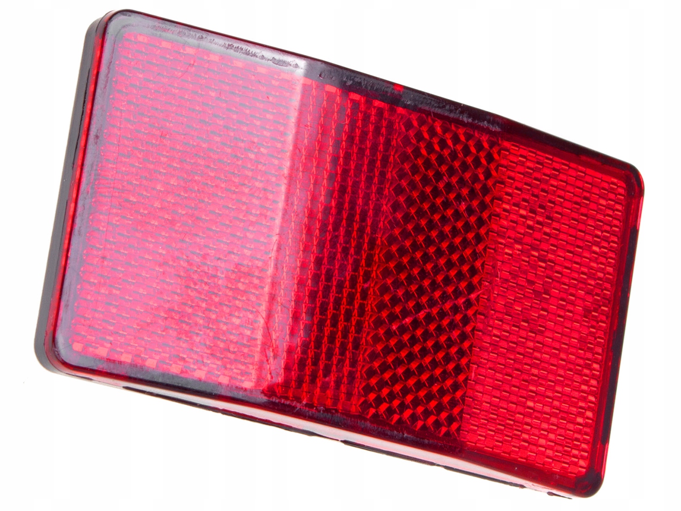 Задній велосипедний відбивач із червоного пластику. Світловідбивач кріпиться до багажника велосипеда за допомогою гвинта. Це забезпечує кращу видимість і вищий рівень безпеки під час руху в темний час доби.