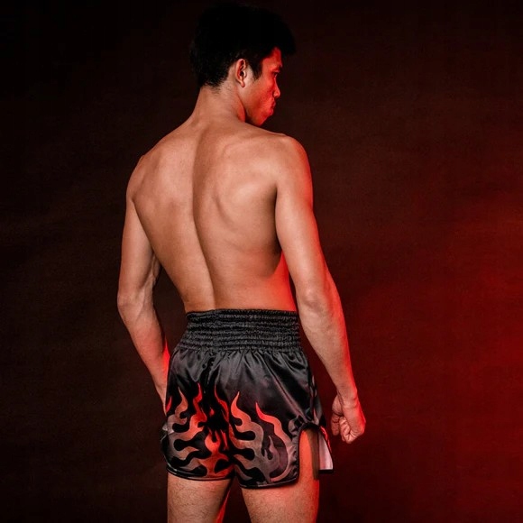 Характеристики червоно-чорних шорт для тайського боксу Fairtex Volcano:
