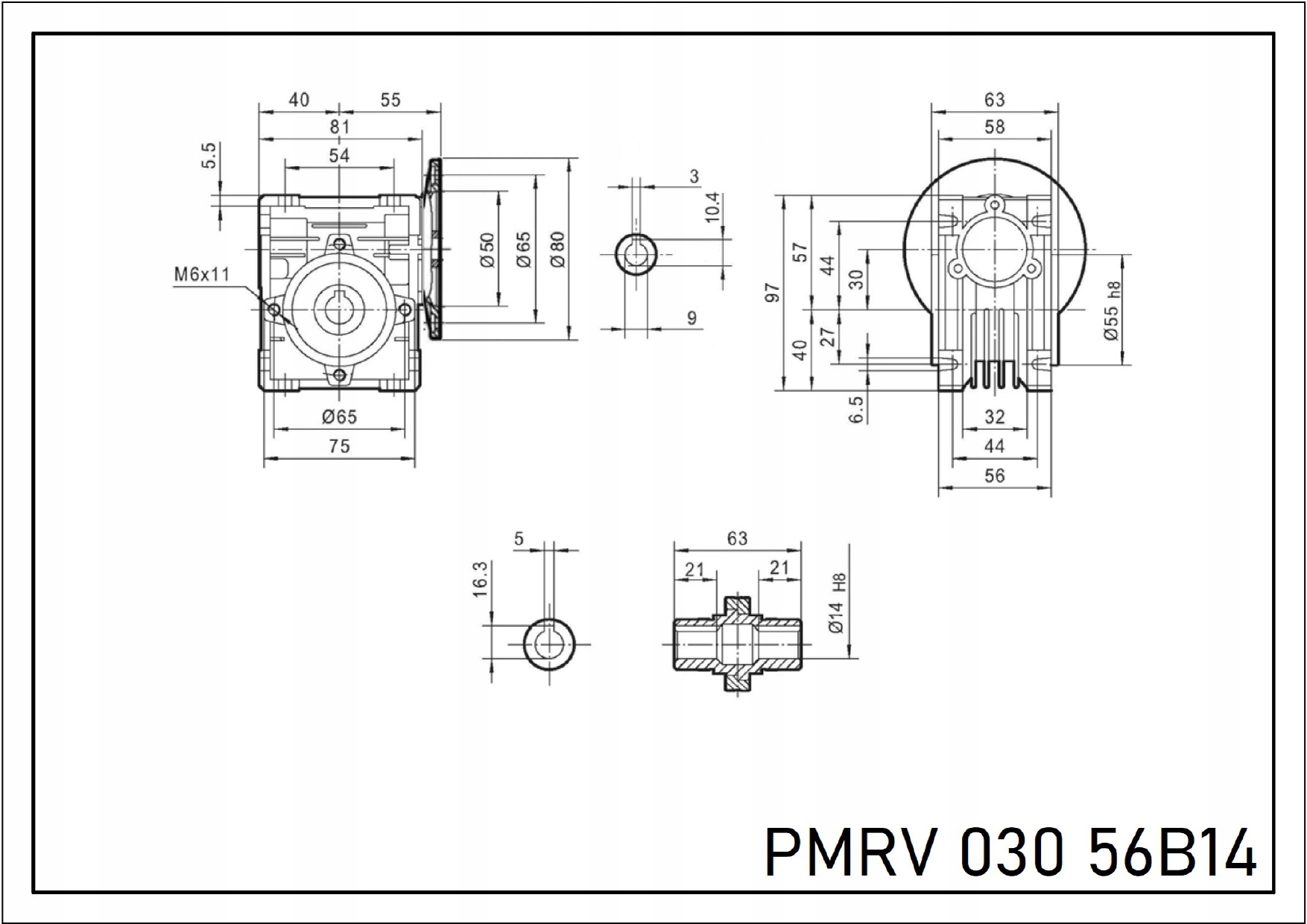 Черв'ячна передача CMI 030 i=15 56B14 Мотор-редуктор PM 030 1/15