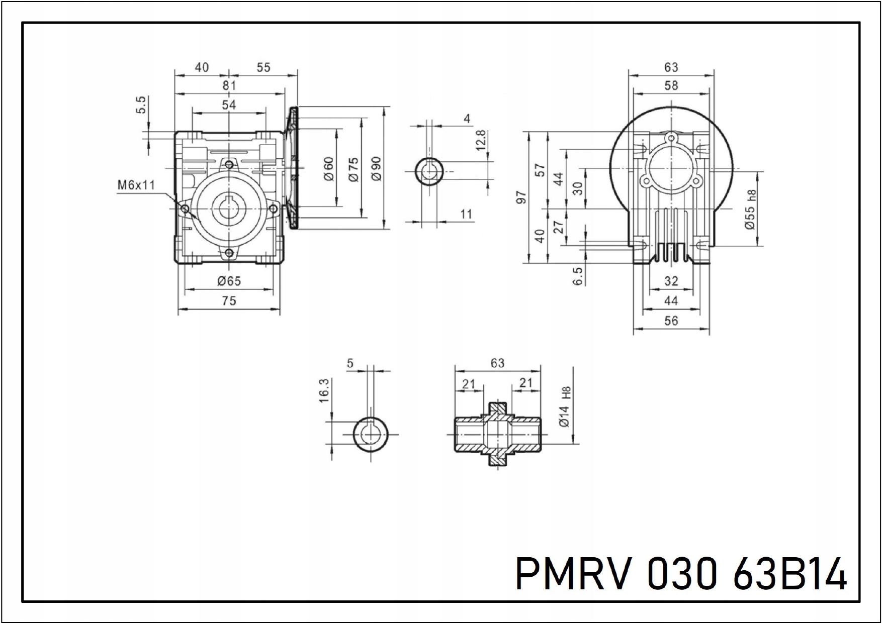Черв'ячна передача CMI 030 i=20 63B14 Мотор-редуктор PM 030 1/20