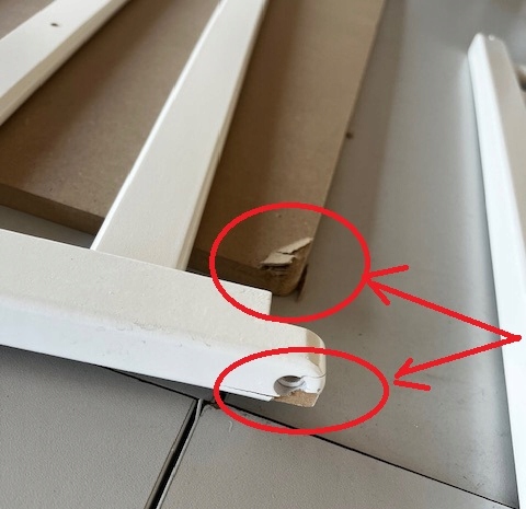 Увага! Продукт не використовується, жоден збірний матеріал - гвинти - не має 2 винахідливих транспортних дефектів: пошкодження кута підлоги та злегка складений елемент при підключенні однієї з сторін - позначених червоними колесами на фотографії поруч - в інших фотографіях фактичних дефектів, видимих, -