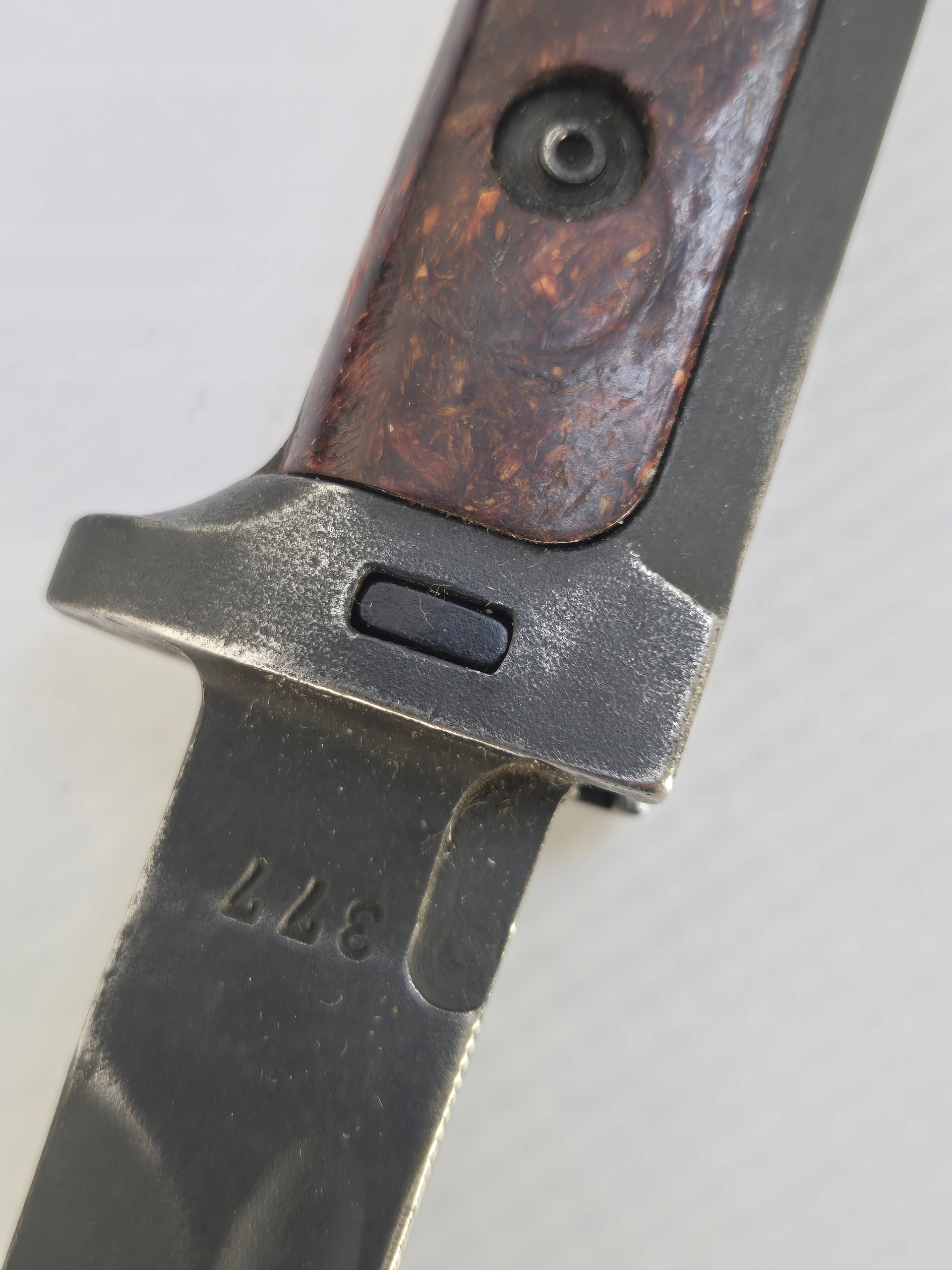 Продаж у мене є оригінальний, чеський VZ58 Bayonet з двома заклепками, з ручкою бакеліту, з довгим Джелком закінчився весь час, а оригінальна шкіряна піхва, що дозволило прикріпити багнети до талії. Така багнети була обладнана армією Чехословаків.