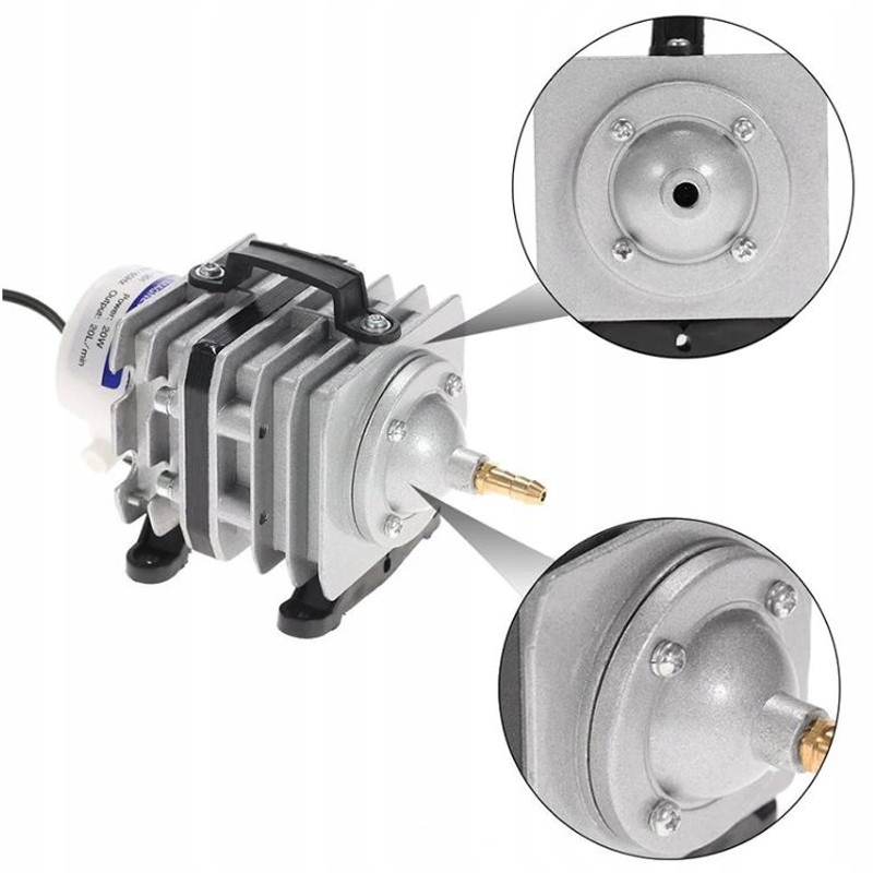 насос аерації, адаптований для використання в акваріумах, суглобах та ставках. Оснащений електричним двигуном з простим і надійним поршневим конструкцією, він був виготовлений з матеріалів із збільшенням міцності на зношення.