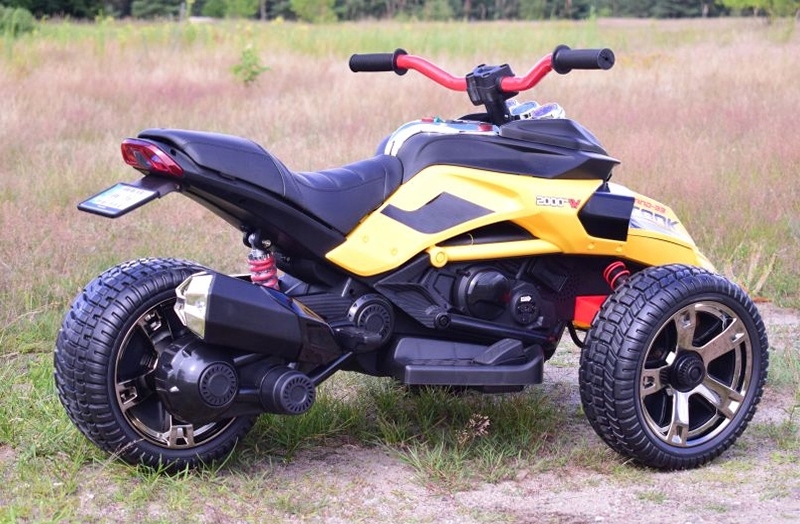 < h2 >ЖовтийПОТУЖНИЙ 3-КОЛІСНИЙ МОТОР LAND 33, АМОРТИЗАТОР, М’ЯКІ КОЛЕСА, М’ЯКЕ СИДІННЯ, ПУЛЬТ ДИСТАНЦІЙНОГО КЕРУВАННЯ