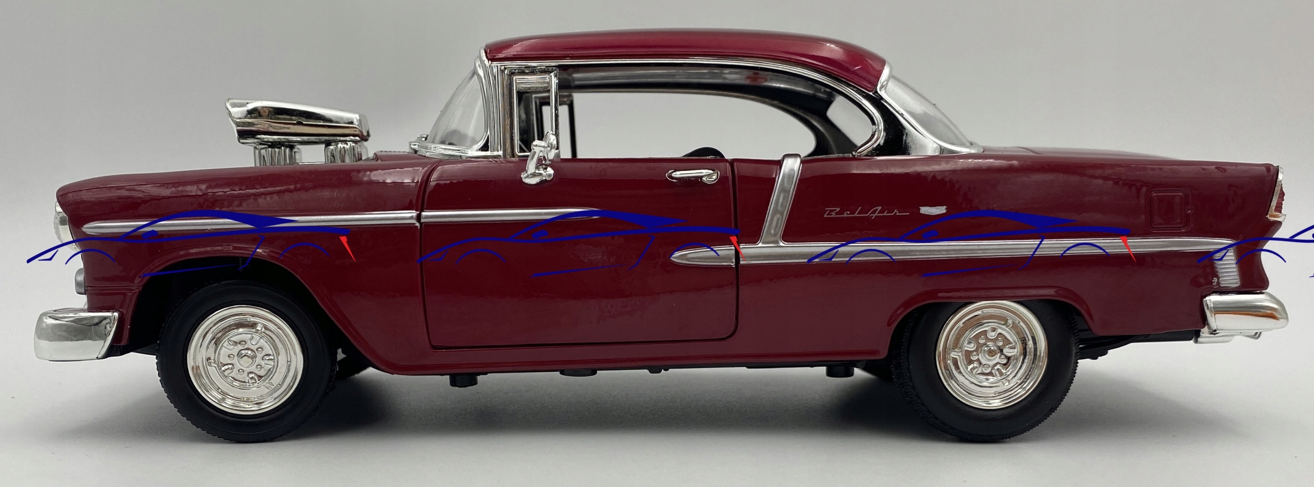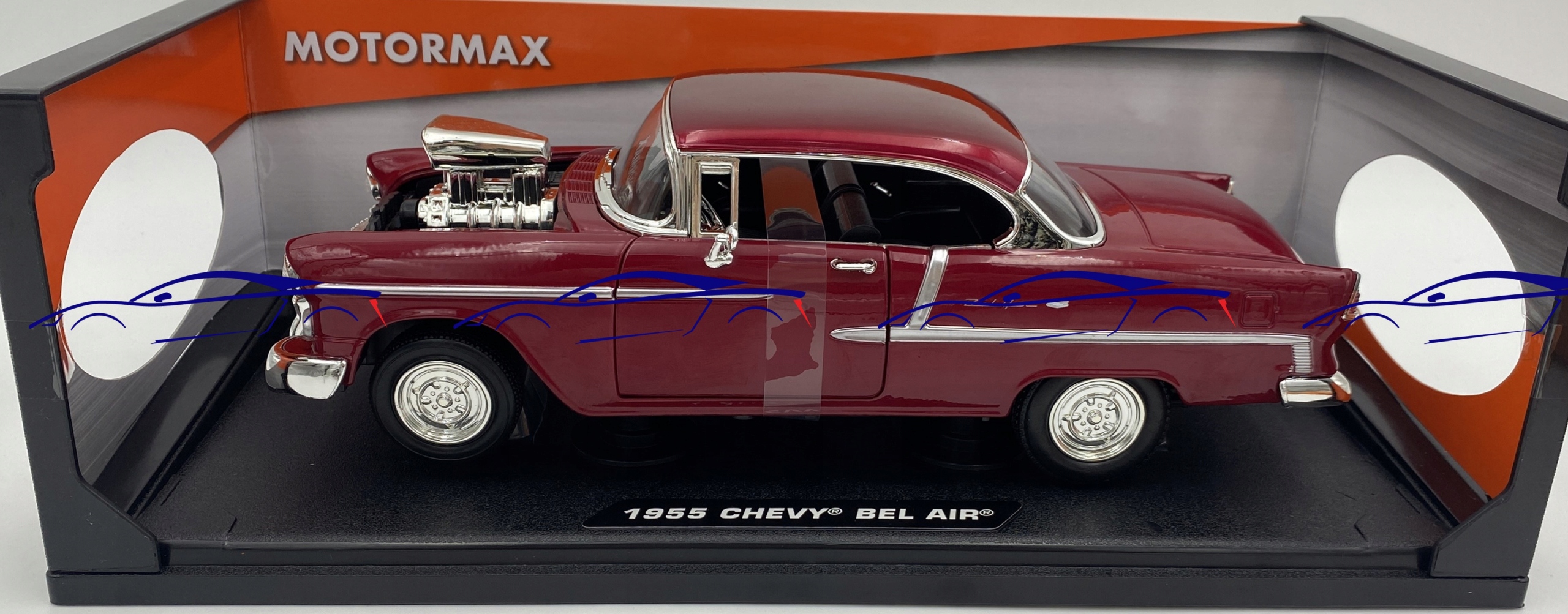 Chevrolet Bel Air coupe 1955 custom 1:18 Motormax 79002 red