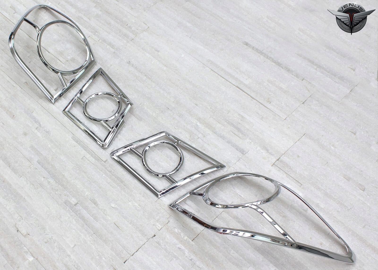 Виріб виготовлено з високоякісного хромованого ABS-пластику. У комплект входить набір з двох накладок на задні ліхтарі.