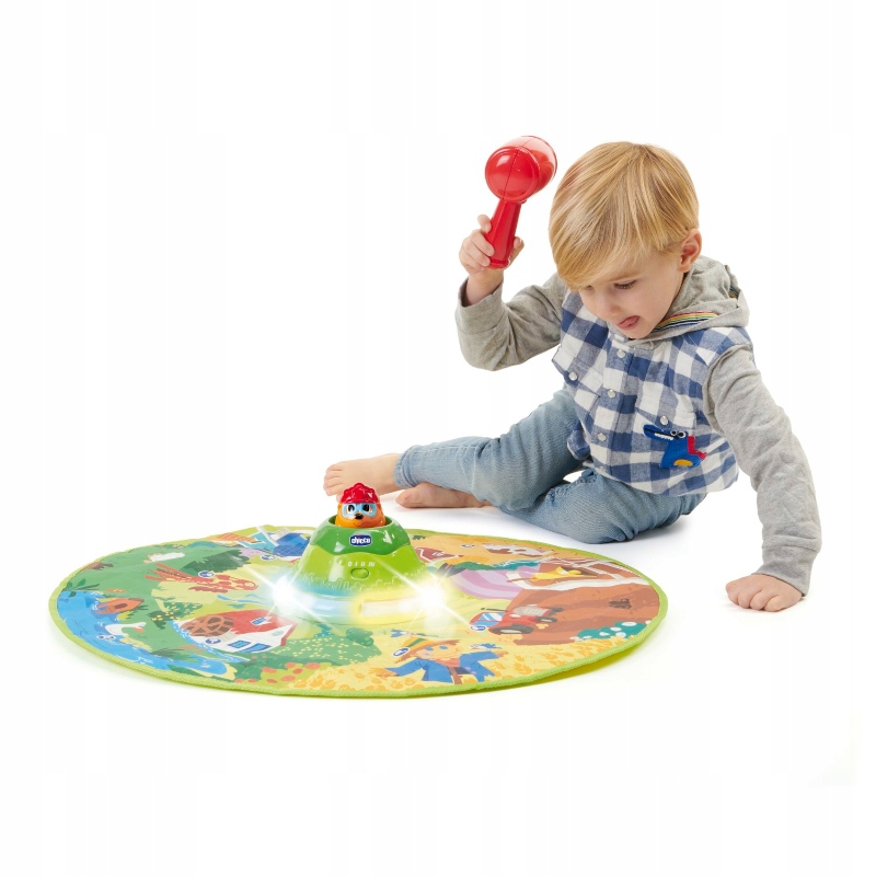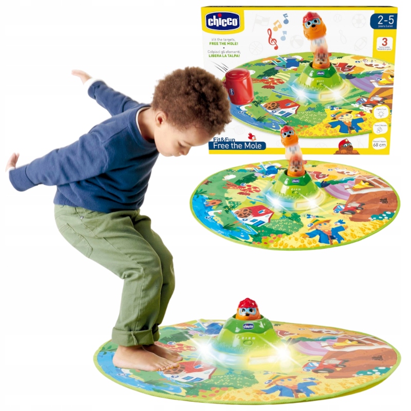 Інноваційний килимок із серії Fit&Fun від Chicco забезпечує інтерактивну розвагу, під час якої ваша дитина може викликати крота з нори за допомогою молотка, руки чи ноги!