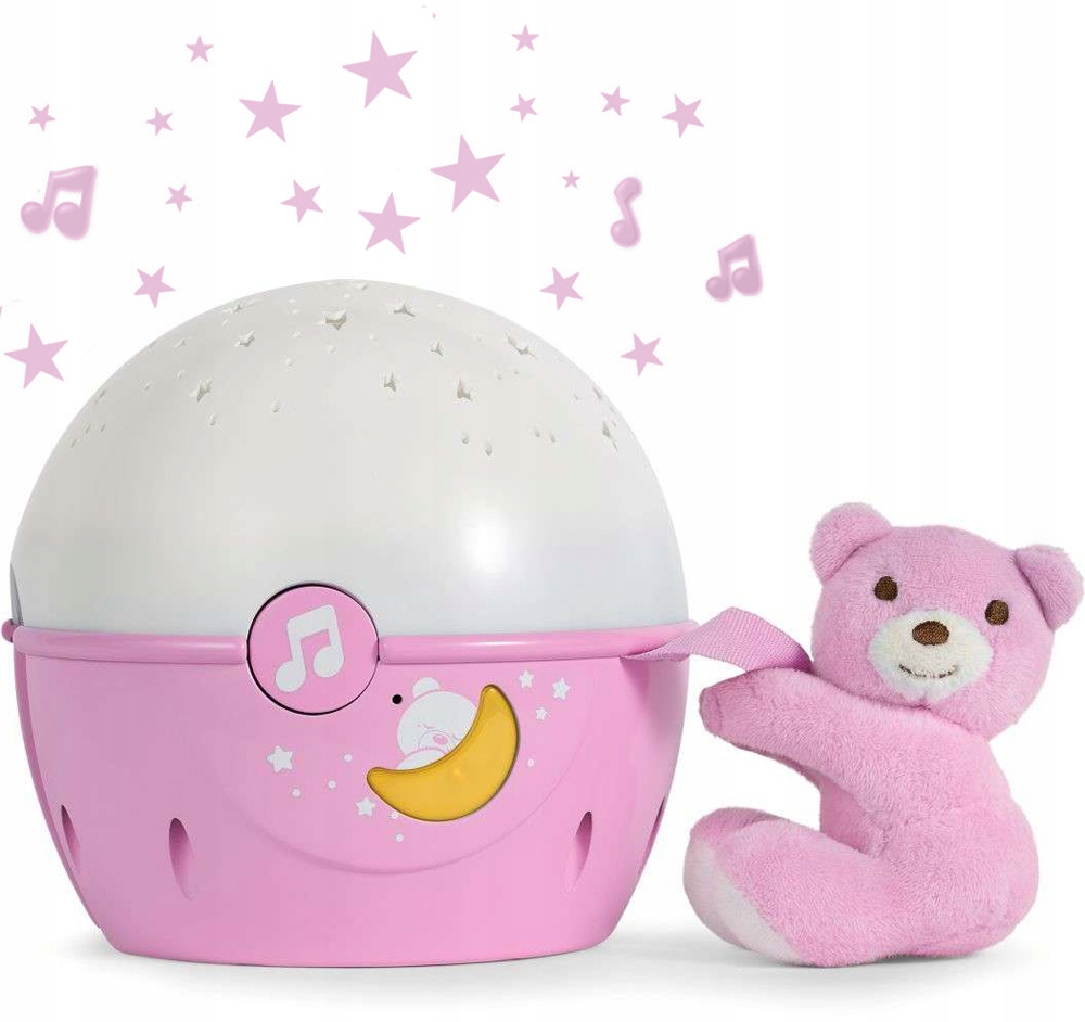 Завдяки вбудованому датчику автоматична іграшка вмикається на звук плачу дитини. Талісман, прикріплений до проектора, солодкого плюшевого ведмедика, відокремлений, щоб він завжди міг супроводжувати дитину!