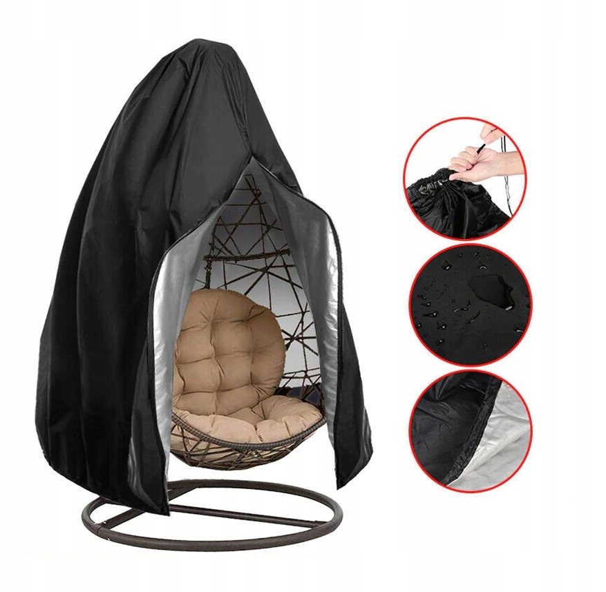 Чохол ефективно захистить ваш підвісний стілець від шкідливого впливу погодних умов. Він виготовлений з дуже міцного, але м'якого поліестеру. Стійкий до несприятливих погодних умов, УФ-променів, водонепроникний. Шнурок і блискавка полегшують надягання та забезпечують ще кращий захист для кошика та подушки.