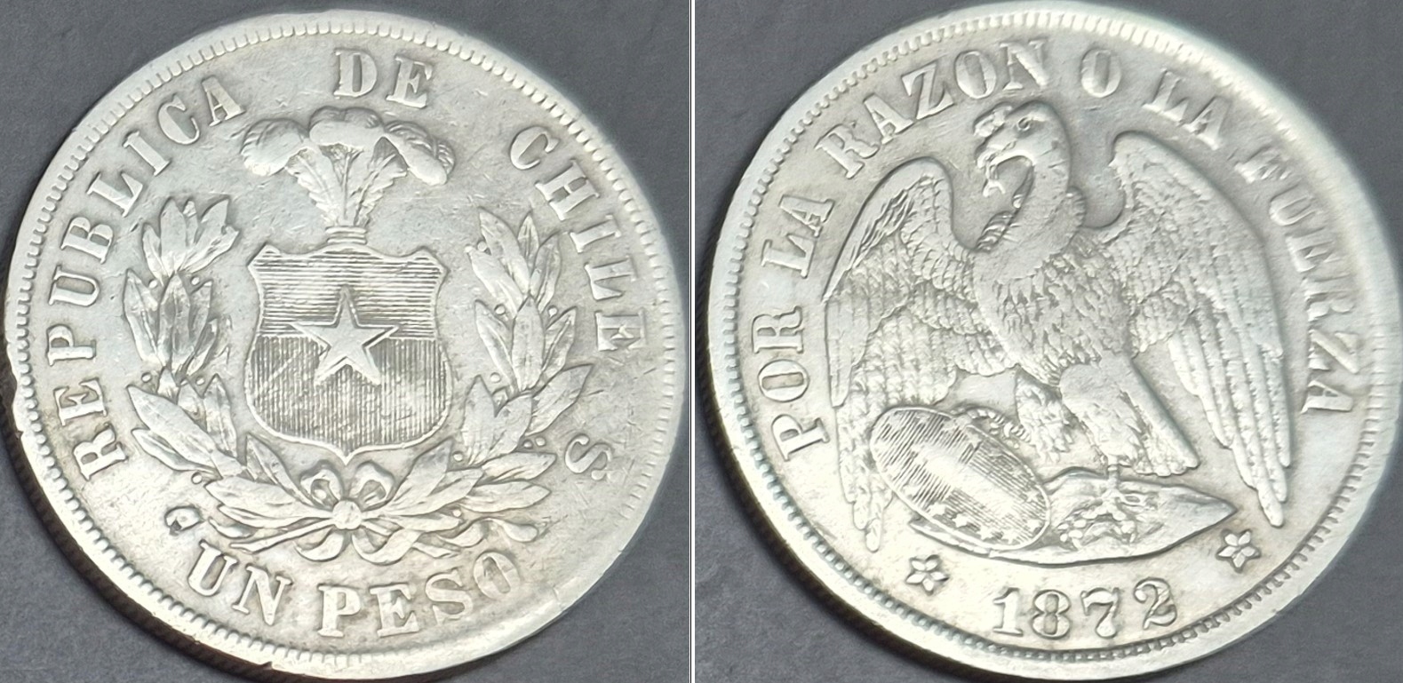 Чилі 1 песо 1872 KM 142.1 срібло 25 грам