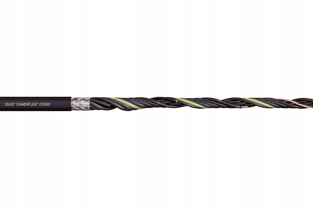 Кабель Igus Chainflex, присвячений еластичним та статичним з'єднанням зі спеціальним, високостійким стиранням зовнішнього шару, екструдованого заповненням ураженого простору. Ця конструкція гарантує, що скручений промінь не буде розщеплюватися, а вени проводяться в певному каналі. Зовнішнє покриття виготовляється в матеріалі, присвяченому для роботи в кабельних путівниках із підвищеним імунітетом. Кабель можна використовувати в надзвичайно високих навантаженнях і високих швидкостях. Тести IGUS гарантують мільйони циклів згинання, захищаючи від невдачі.