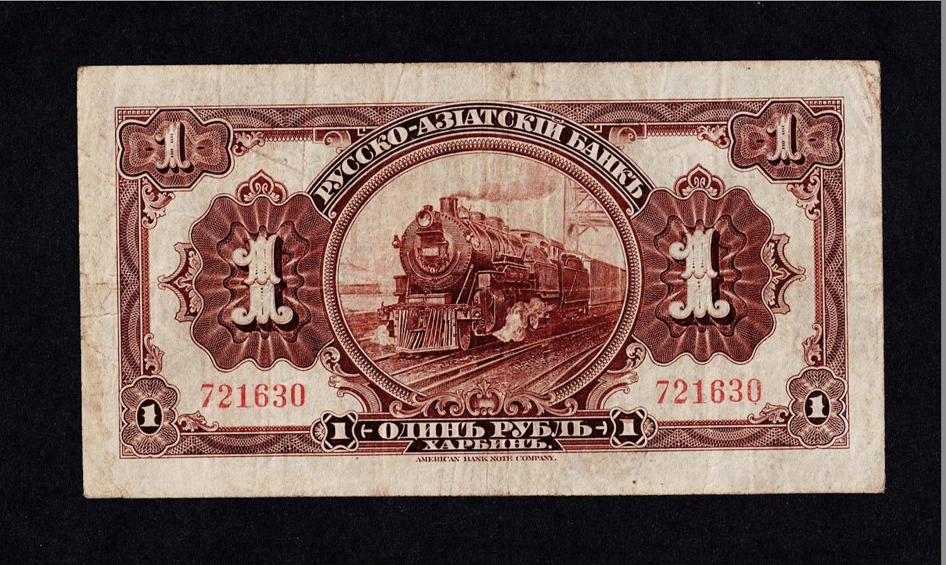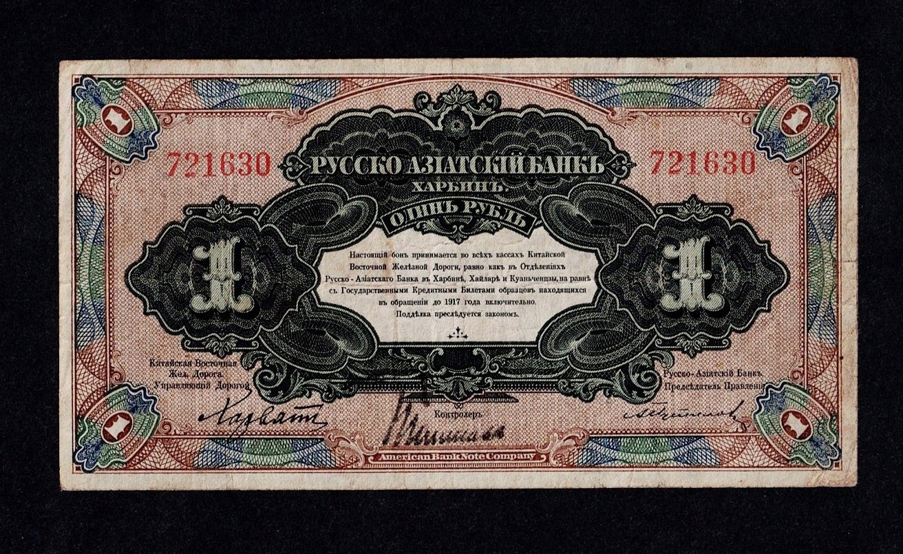 CHINY, BANK ROSYJSKO-AZJATYCKI HARBIN 1 RUBEL 1917 VF P#S474a bez prefiksu