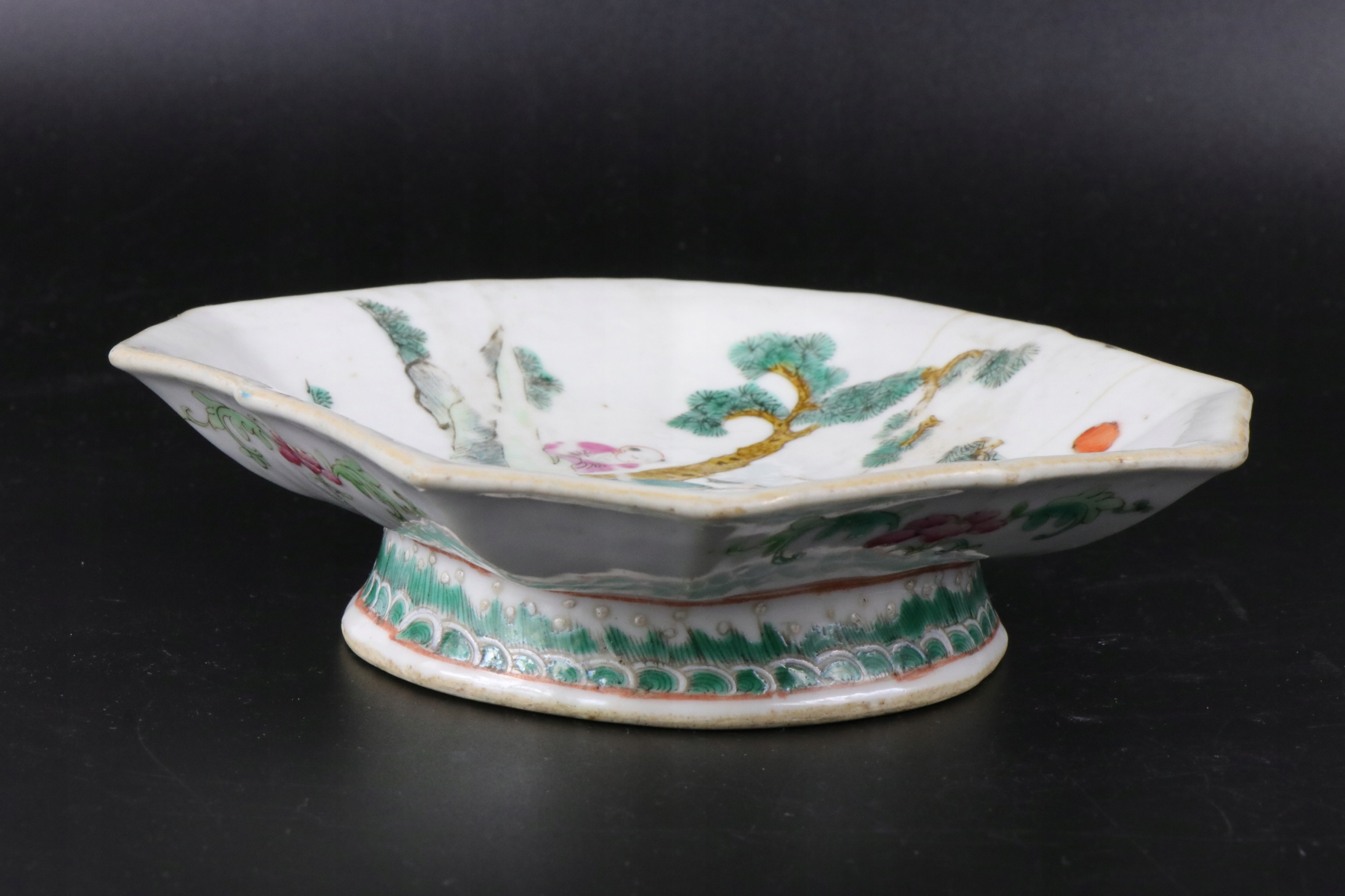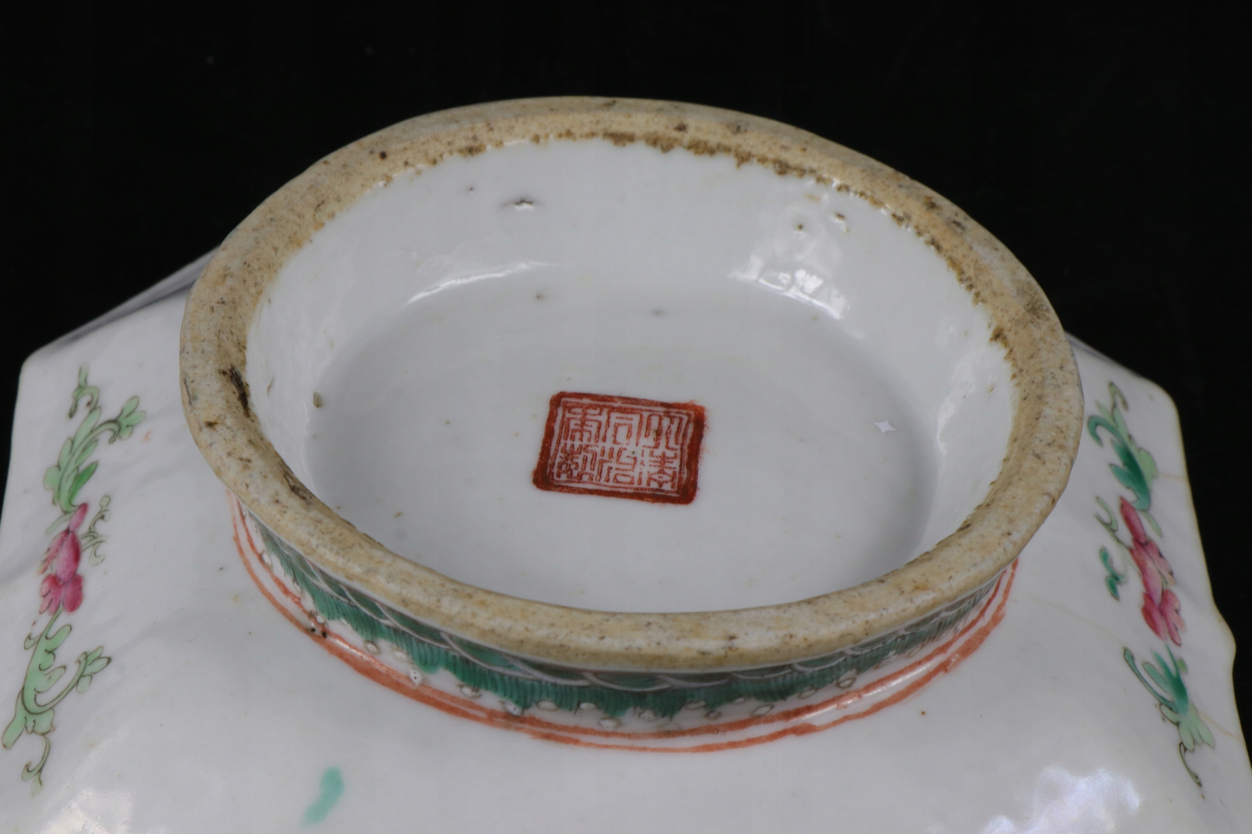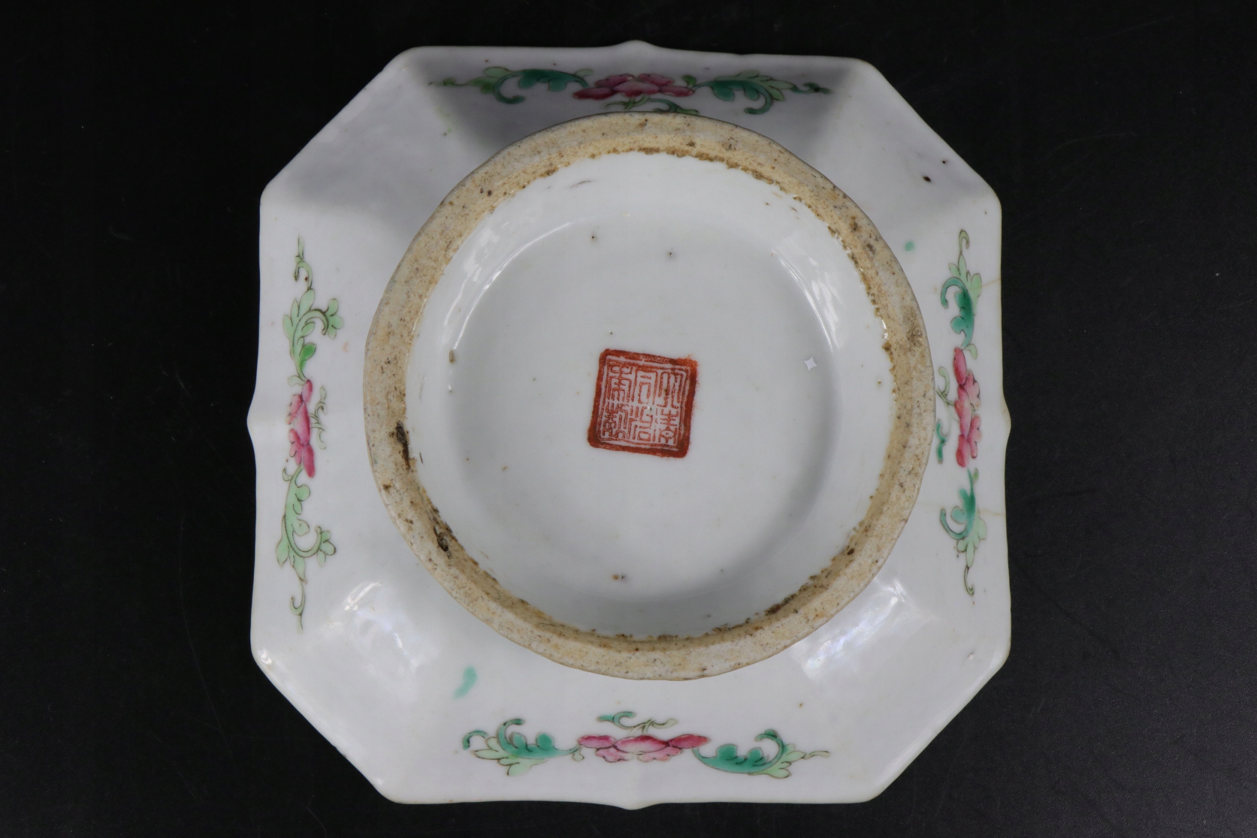 Chiny porcelanowy kwadratowy talerz II połowa XIX wieku Farby emaliowe