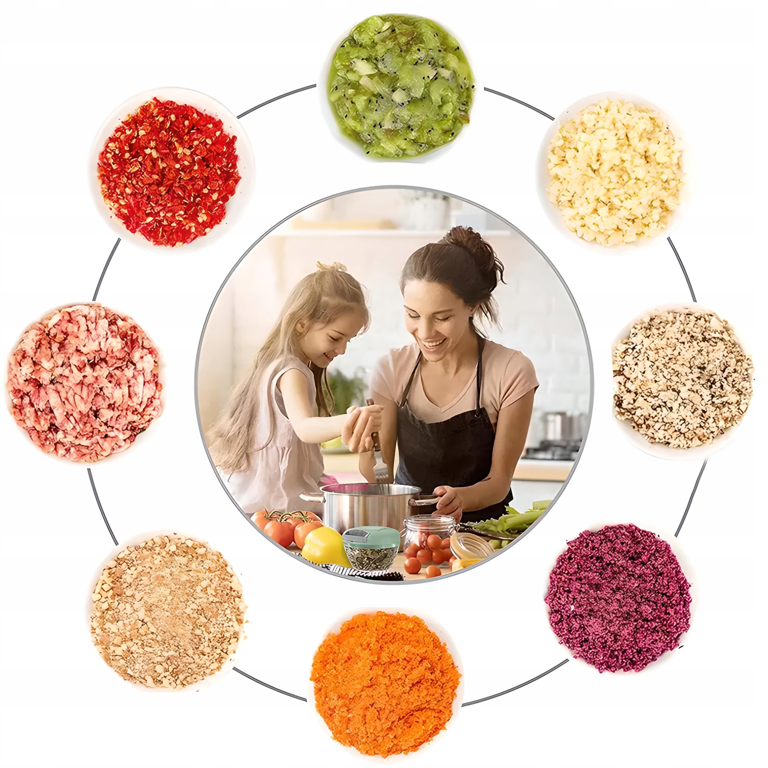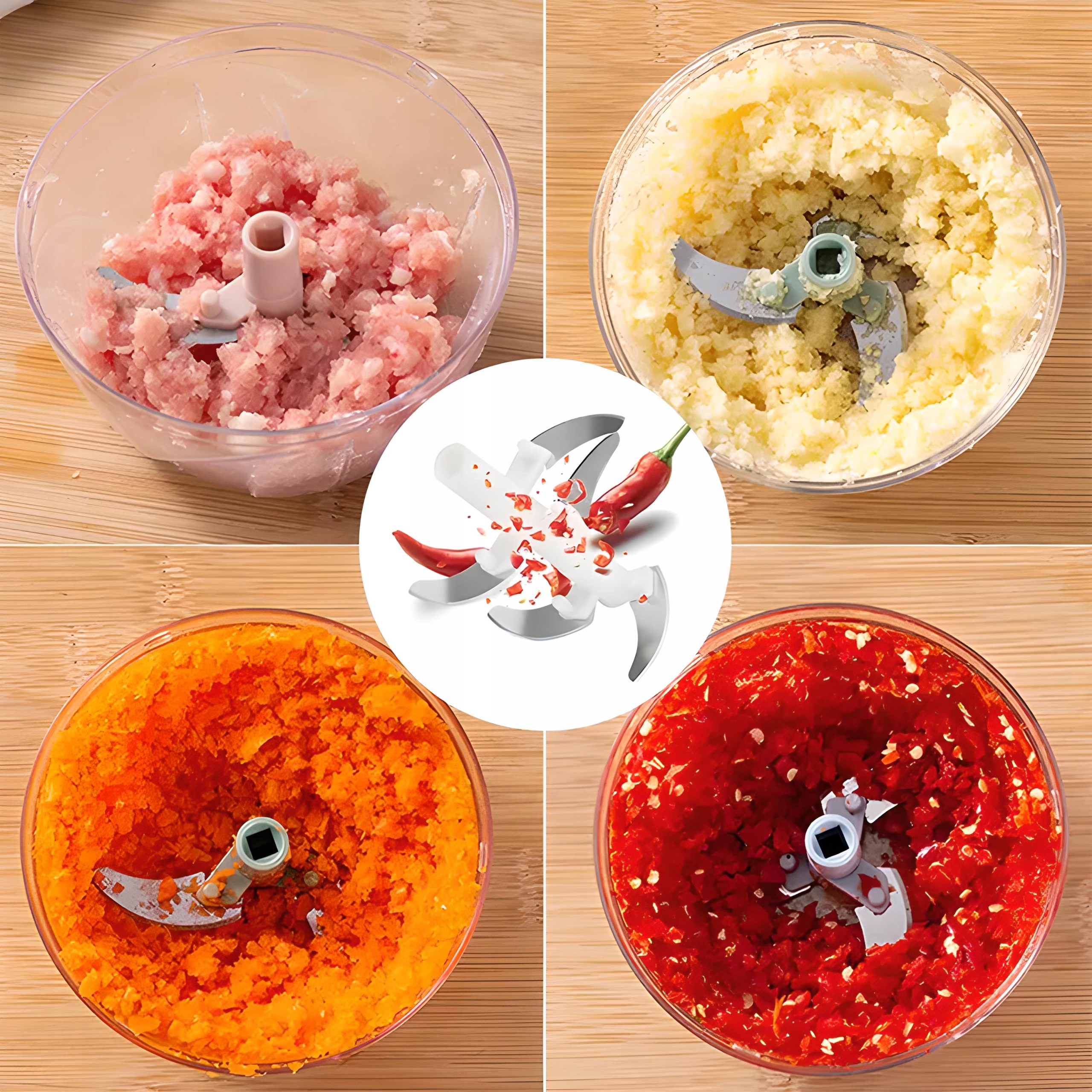 ✔️Рівномірне подрібнення: Завдяки лезу на мотузці подрібнювач дозволяє отримувати рівні шматочки інгредієнтів. Це корисно, коли потрібно рівномірне подрібнення, наприклад, при приготуванні салатів, страв або спредів.