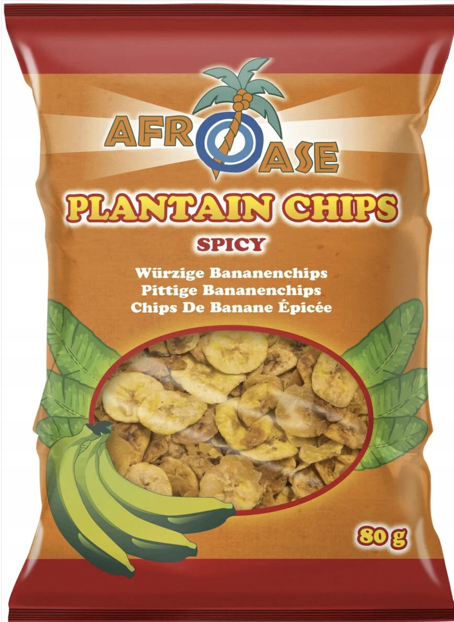 Afroase Plantain Chips Extra Spicy — це хрустка закуска з подорожників, обсмажених у пальмовій олії та приправлених перцем хабанеро. Інтенсивно пряний, але натуральний і простий за складом. Ідеально підходить для любителів гострих смаків і екзотичних закусок. Продукт родом з Еквадору і є чудовою альтернативою класичним картопляним чіпсам.