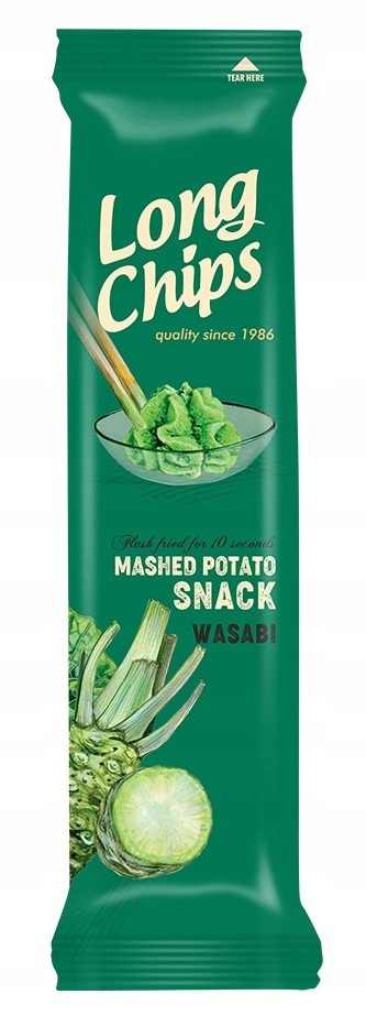 - Довгі чіпси мають оригінальну форму – вони довгі, плоскі та дуже тонкі. Розміщується на підносі, щоб запобігти пошкодженню.