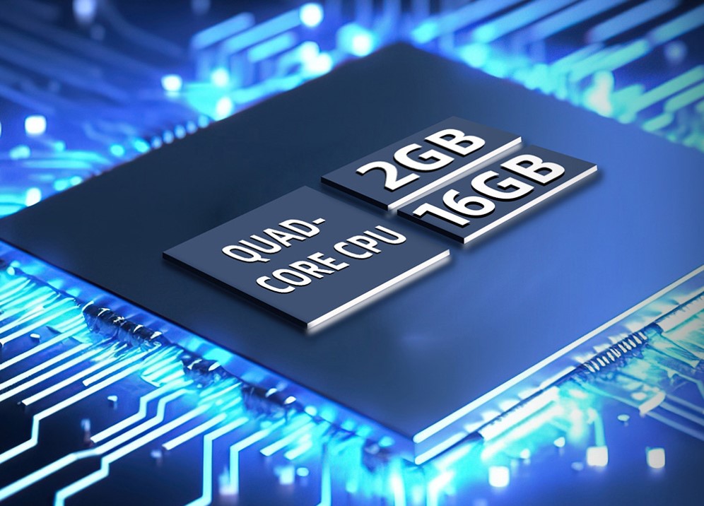 Ефективний чотирьохядерний процесор і 2 ГБ оперативної пам’яті та 16 ГБ ПЗУ забезпечують безперебійну роботу та швидку реакцію на команди.