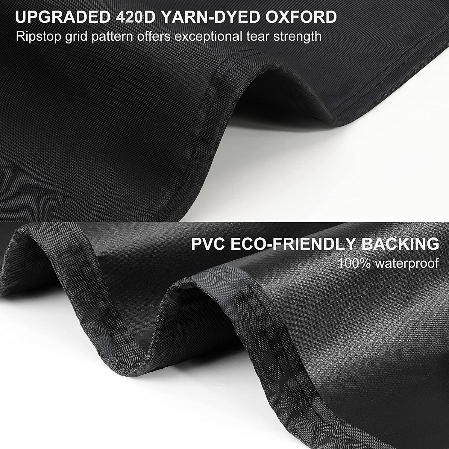 Виготовлено з інтегрованої тканини 185 г/кв.м, поєднуючи 420D Oxford і високоякісний ПВХ, що гарантує, що ваші меблі не намокають під час дощу та снігу.