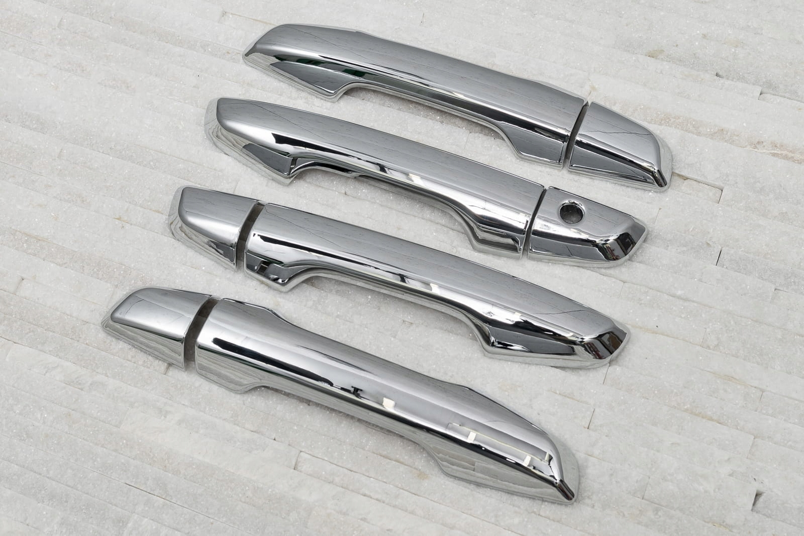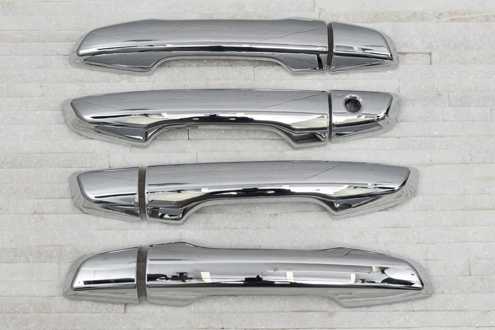 Декоративні хромовані накладки підкреслюють форму дверних ручок, роблячи їх справжньою окрасою Honda CR-V. Завдяки високому глянцю хромованої поверхні дверні ручки набувають стильного вигляду, додаючи розкішний акцент стилю автомобіля. Виріб виготовлено з високоякісного хромованого ABS пластику.