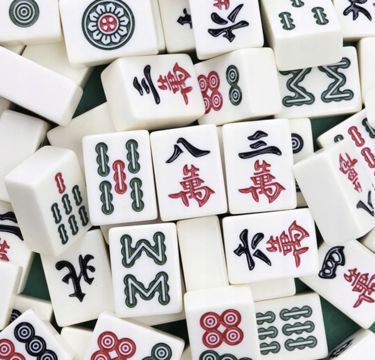 - Набір включає: 144 фігури маджонгу, 4 кубики