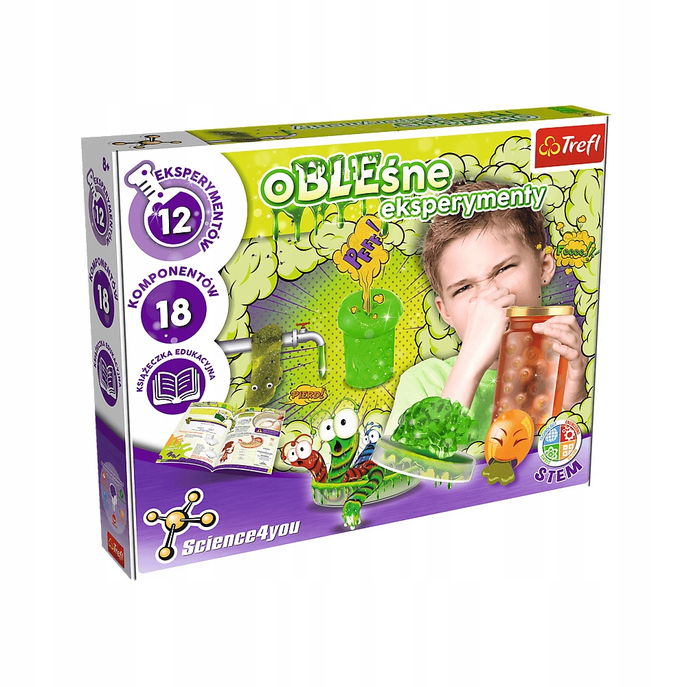 Пориньте у світ брудних експериментів із серії Science4you і дізнайтеся, що за ними стоїть наука. Відкрийте для себе унікальні огидні явища, які відбуваються в організмі людини. Чи знаєте ви, що без них організм людини не міг би нормально функціонувати? Дізнайтеся, які реакції відбуваються в шлунку і чому тіло видає різні звуки. Ознайомитися з видами виділень та їх агрегатними станами. Спускайтеся під землю і зустрічайте каналізаційних монстрів. Проведіть 12 дивовижних експериментів, пов'язаних з природними, але водночас огидними рефлексами нашого тіла, і знайдіть їх наукове обґрунтування. Для проведення експериментів використовуйте 18 компонентів, що входять до комплекту.