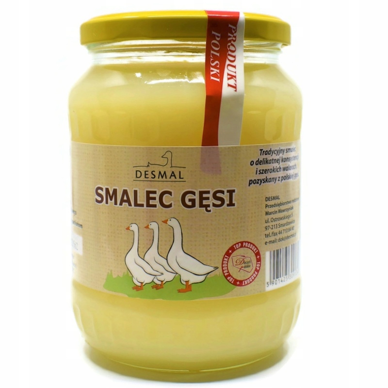 Він був присутній, зокрема, у польській кухні протягом століть. завдяки своєму надзвичайному смаку. На відміну від інших жирів, гусяче сало можна використовувати при високих температурах - навіть понад 200 градусів Цельсія - без руйнування його молекулярної структури.