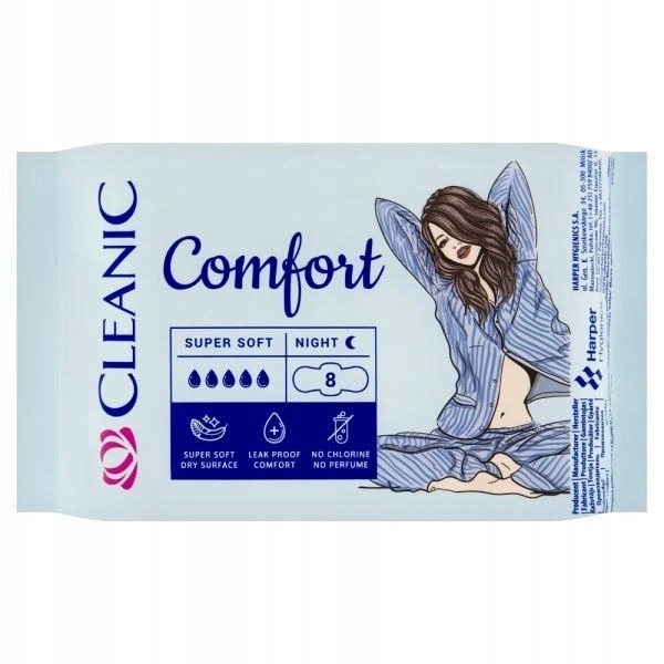 чиста нічна гігієнічна серветка, 8 шт. Super -Absorbent, завдяки якому вони ефективно зупиняють вологу всередині санітарної серветки, зберігаючи шкіру сухим. Тонка конструкція гарантує повну придатність тіла, мінімізуючи ризик переміщення продукту.