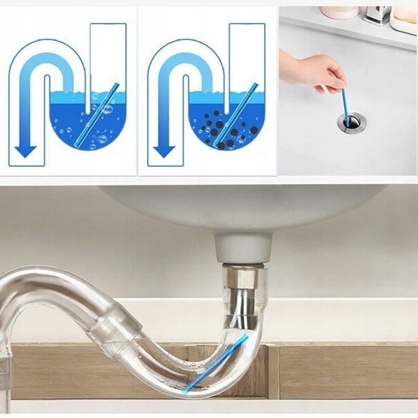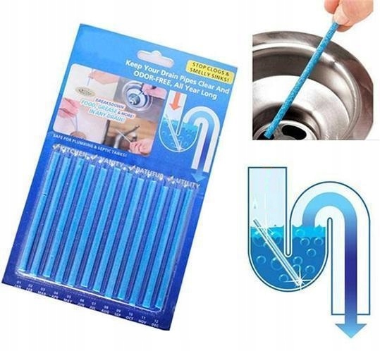 Палички для прочищення труб і каналізації завдяки спеціальним ензимам розчиняють жир, бруд і будь-які речовини, що залишилися в трубах. Вони усувають засмічення в трубах і усувають неприємні запахи. Палички можна використовувати як у ванній, так і на кухні.