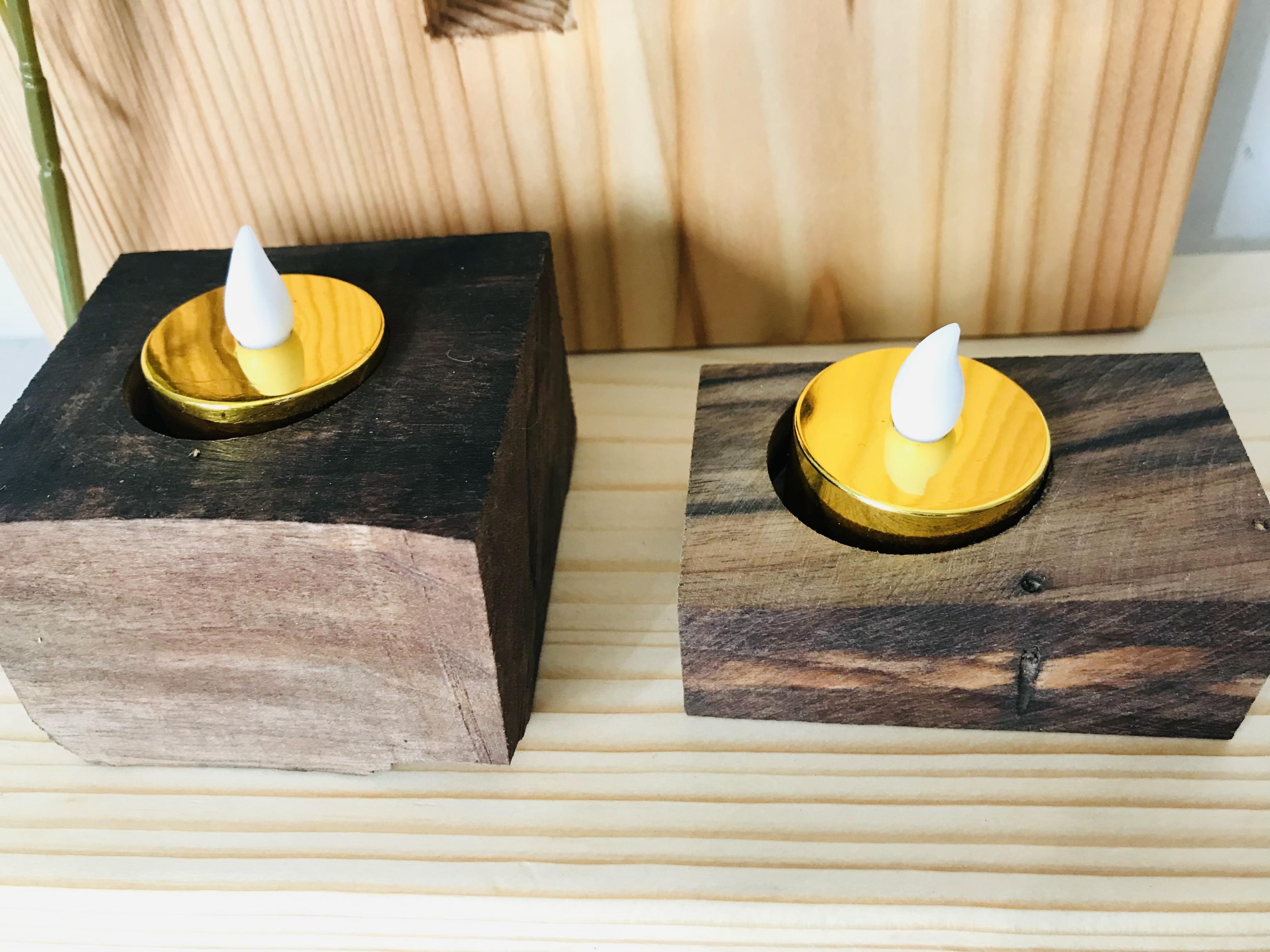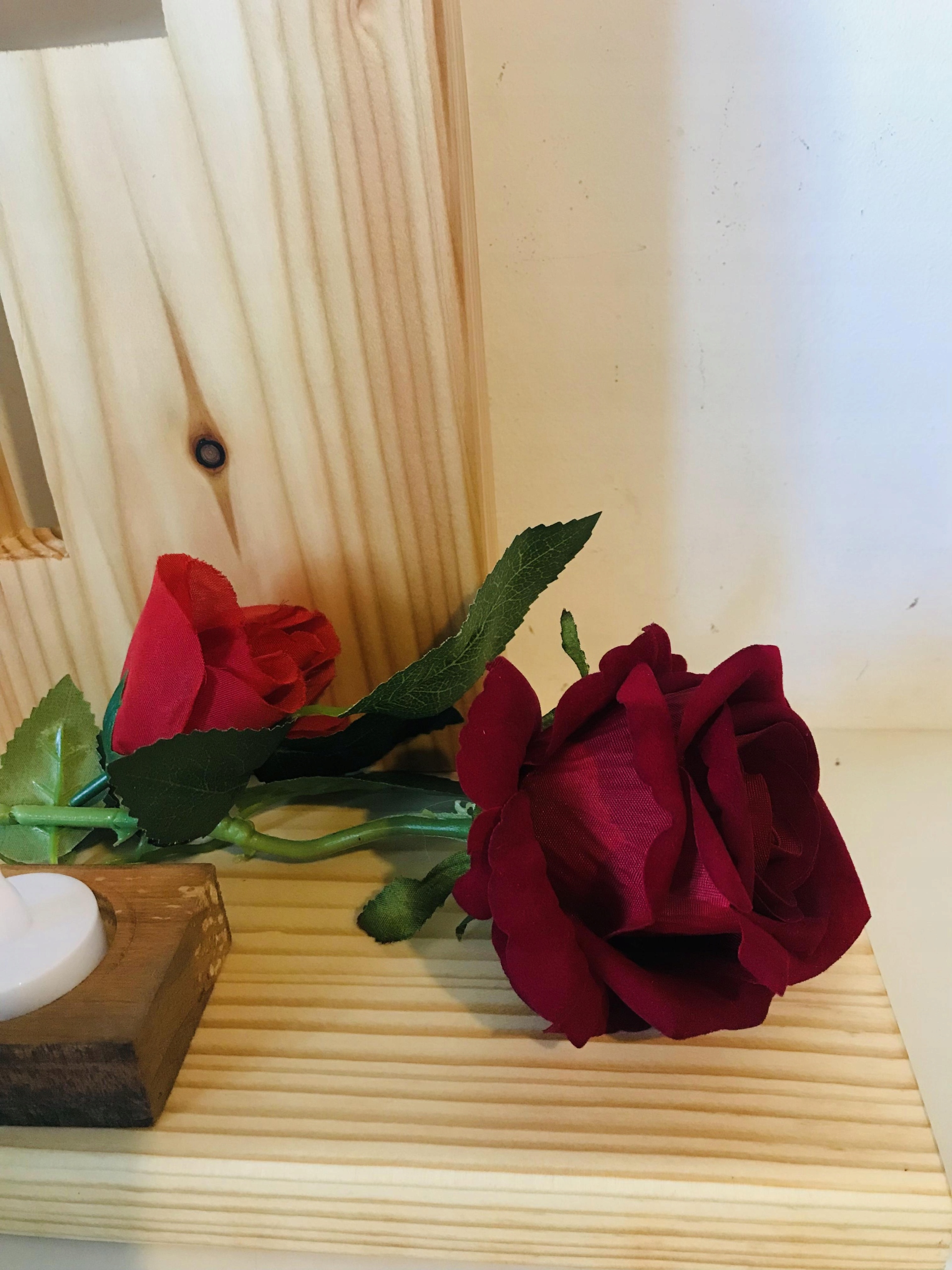 Красиві дерев'яні композиції з дерева з трояндою і вогнями.