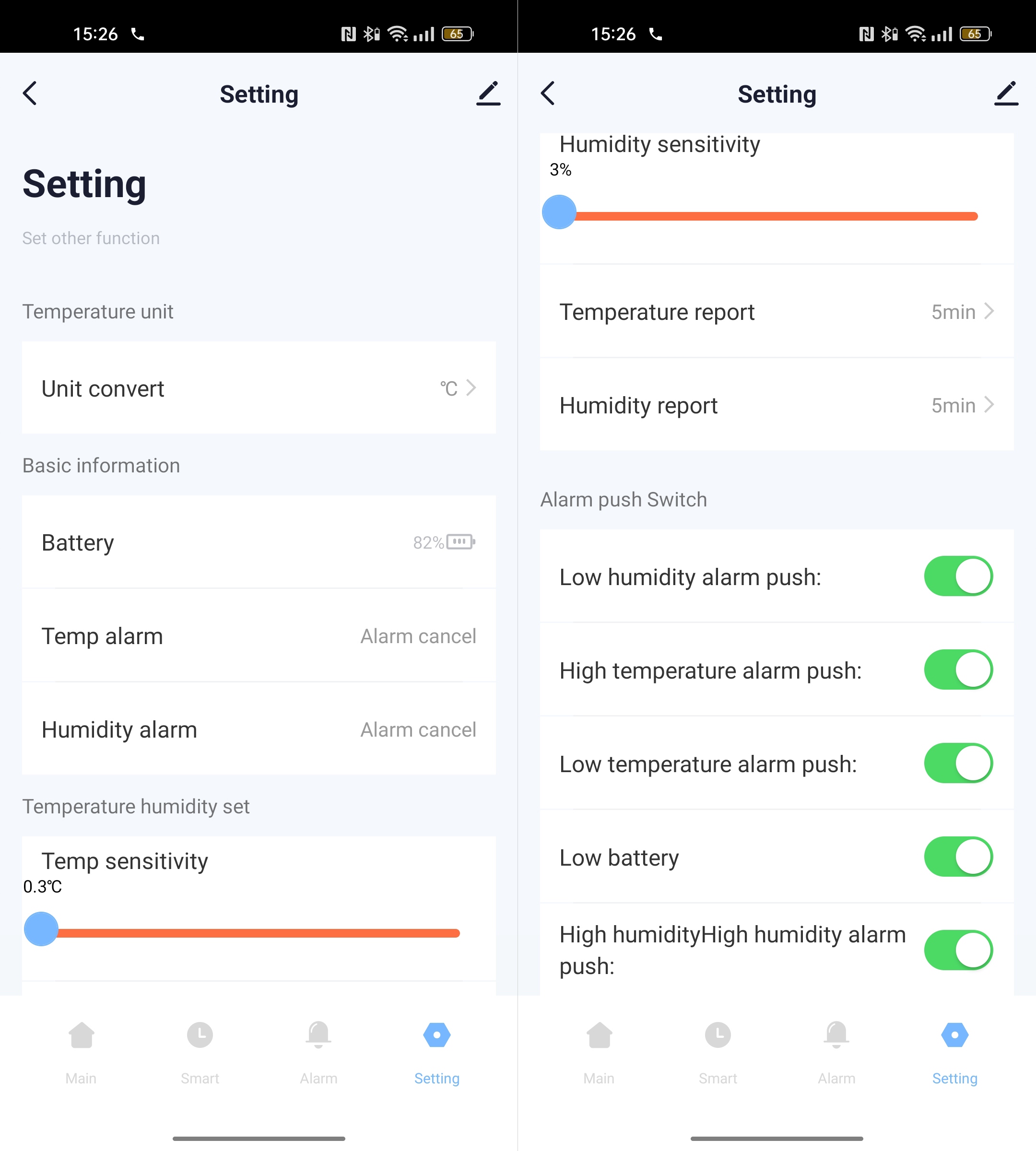 Користувач може отримувати повідомлення в додатку про перевищення попередньо встановлених діапазонів температури або вологості