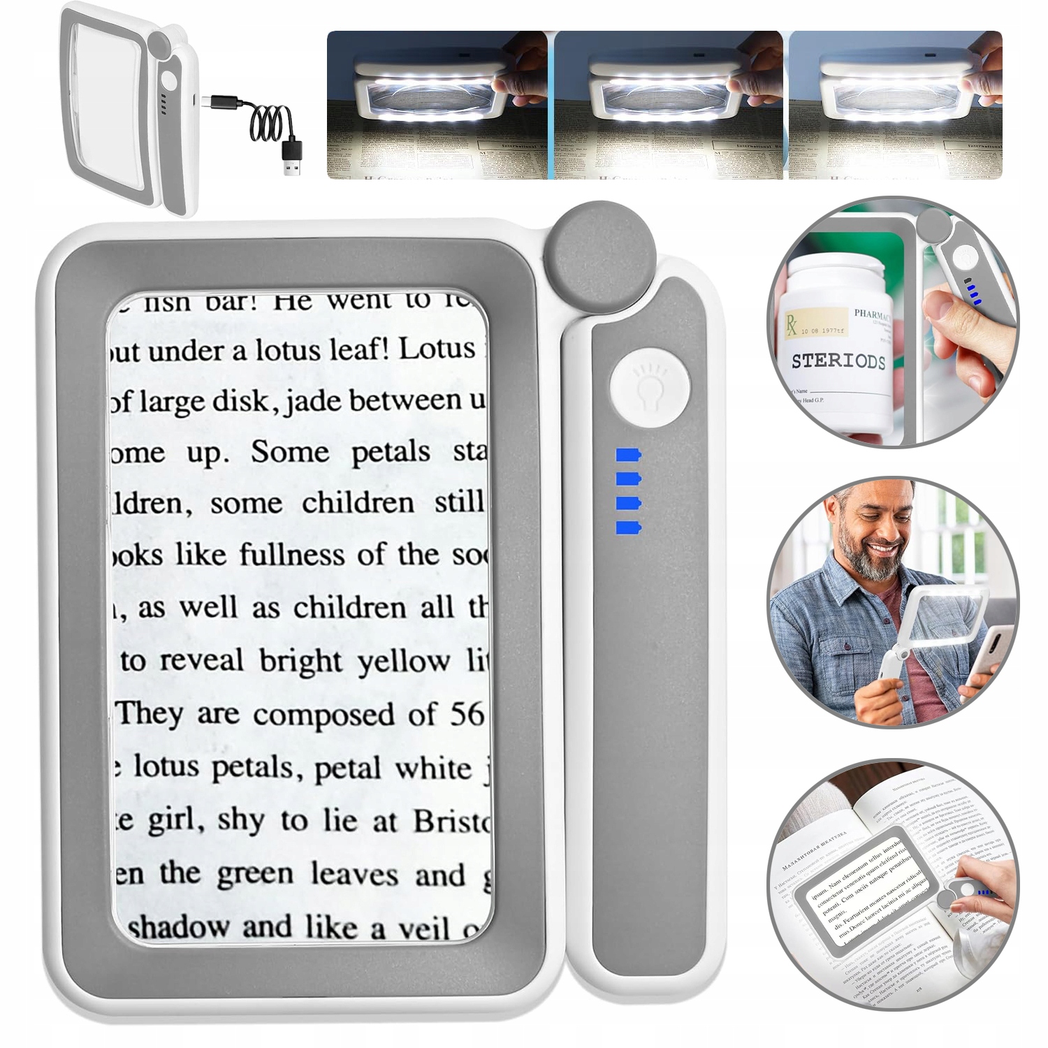 📰📰📰 Велика прямокутна лінза: Ця велика і широка прямокутна лупа спеціально розроблена, щоб імітувати те, як ми природним чином бачимо речі зліва направо. Це прозоре збільшувальне скло забезпечує 4-кратне збільшення без спотворення, що дуже корисно під час читання дрібних шрифтів.