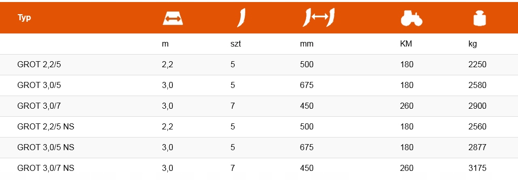 - GROT 3.0/7 NS - ширина 3м, 7 запобіжних зубів гідравлічний