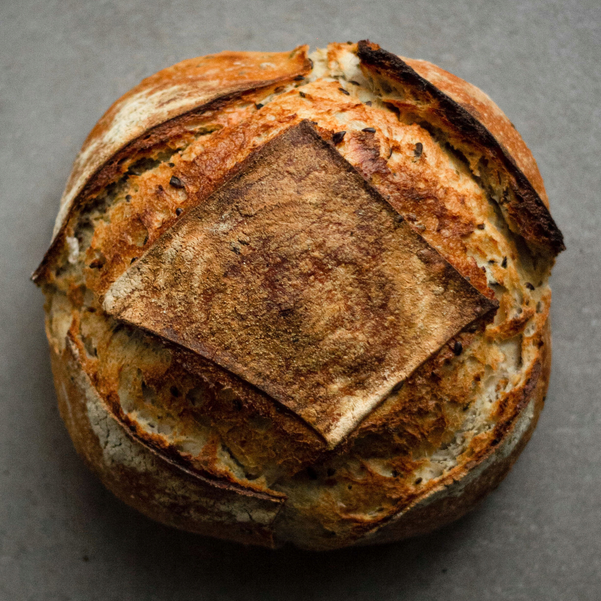 Хліб 3-зерновий — це пшенично-житній хліб на заквасці з додаванням 3-х зерен. Смажене насіння соняшнику, лляне насіння та білий кунжут збагачують його смак і надають цьому хлібу неповторного запаху. Скибочки хліба з 3 зернами ідеально поєднуються з салом або вершковим хумусом. Цей круглий хліб часто вибирають для особливих подій, таких як весілля.