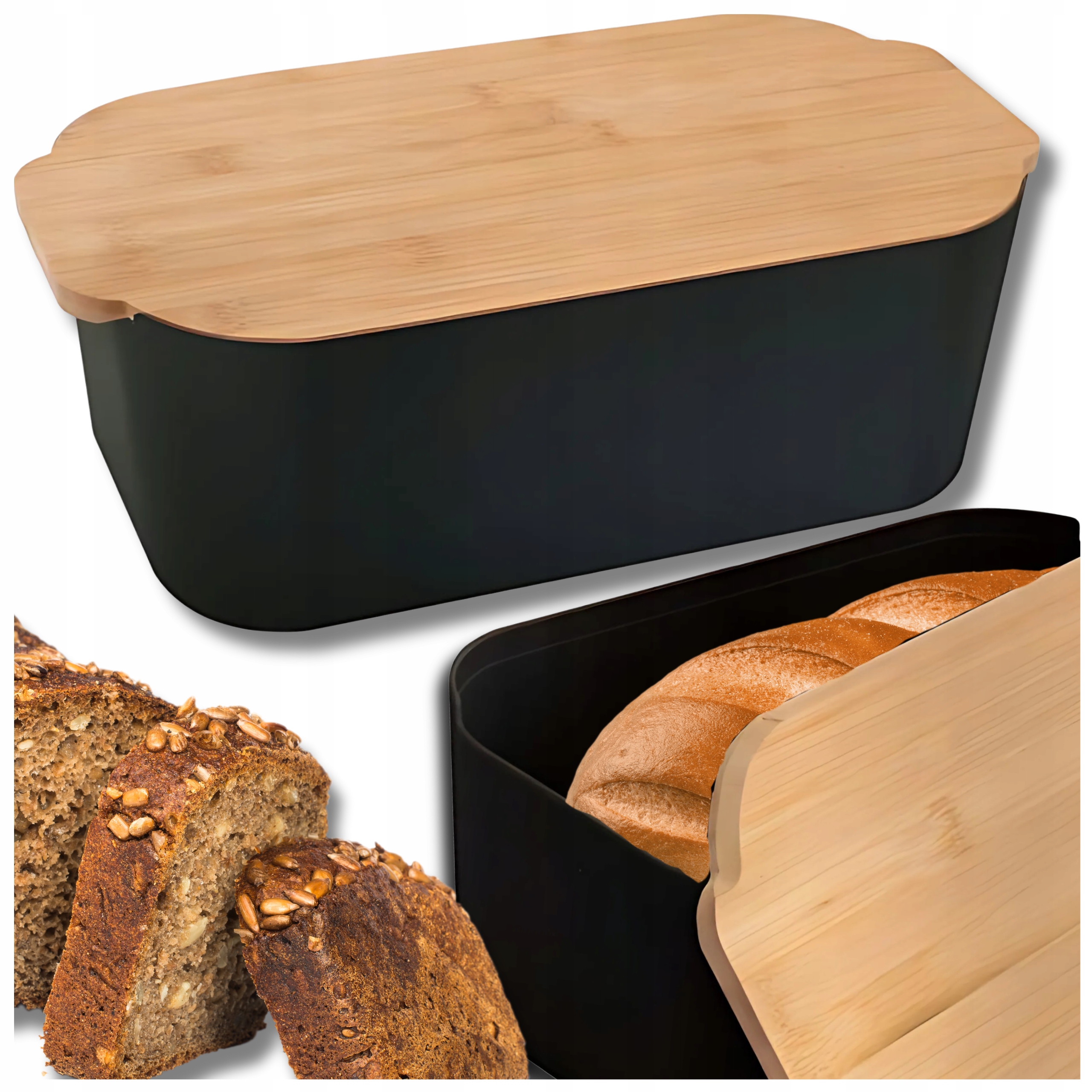 CHLEBAK Pojemnik na Chleb Pieczywo BAMBUS Czarny