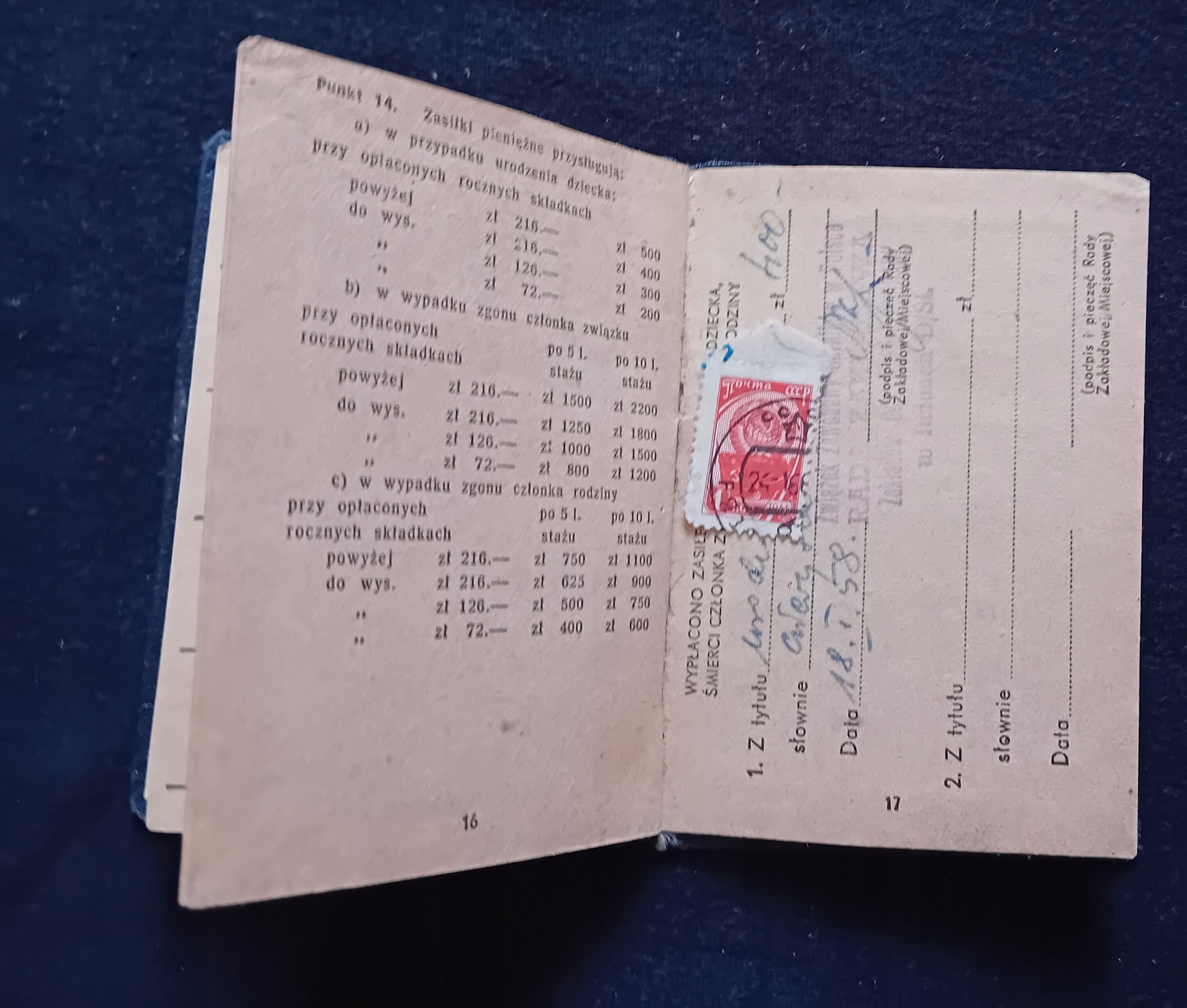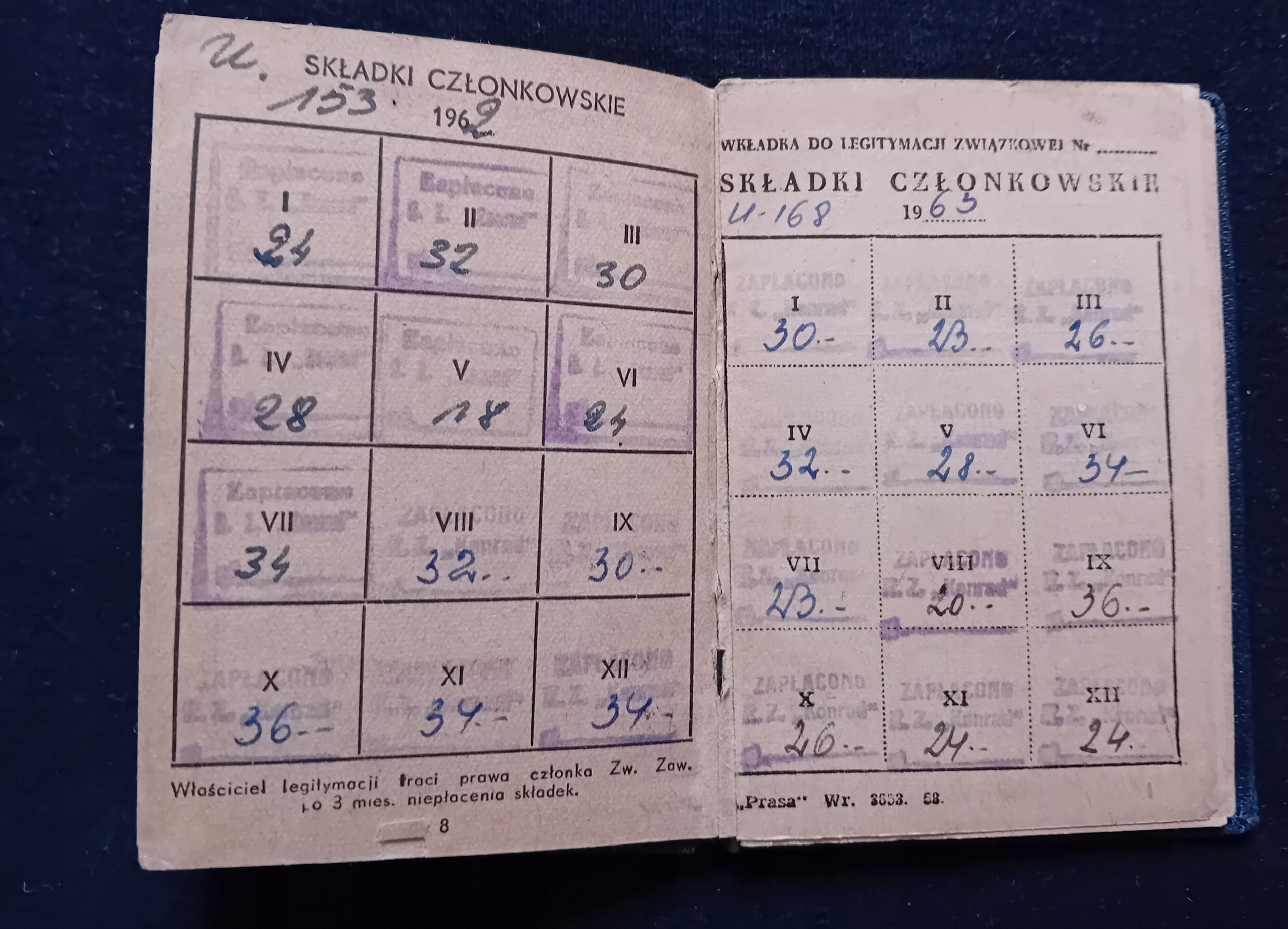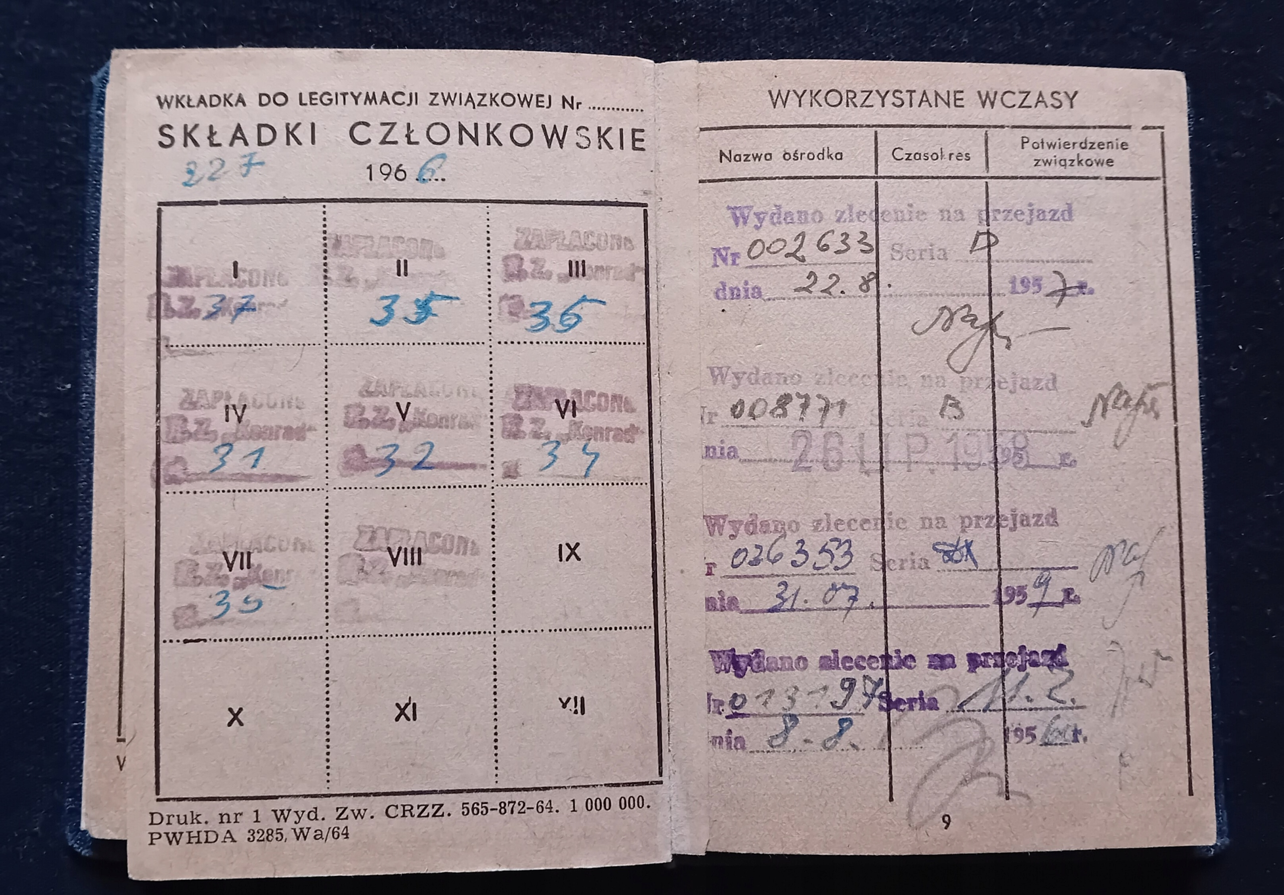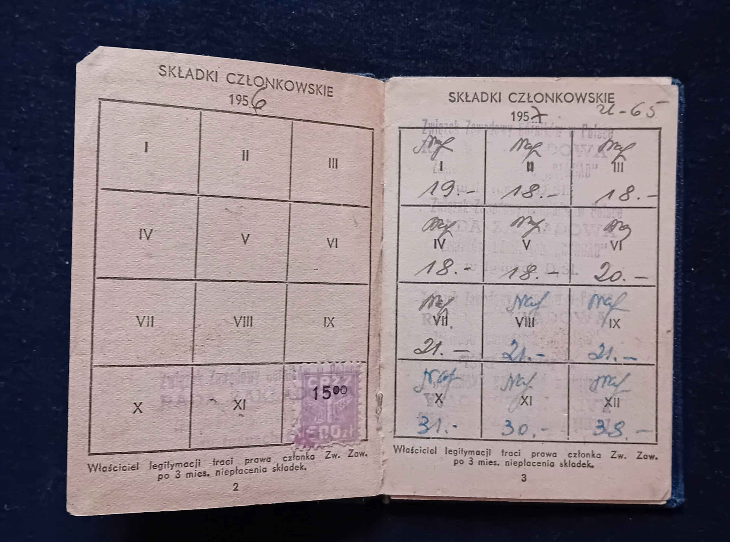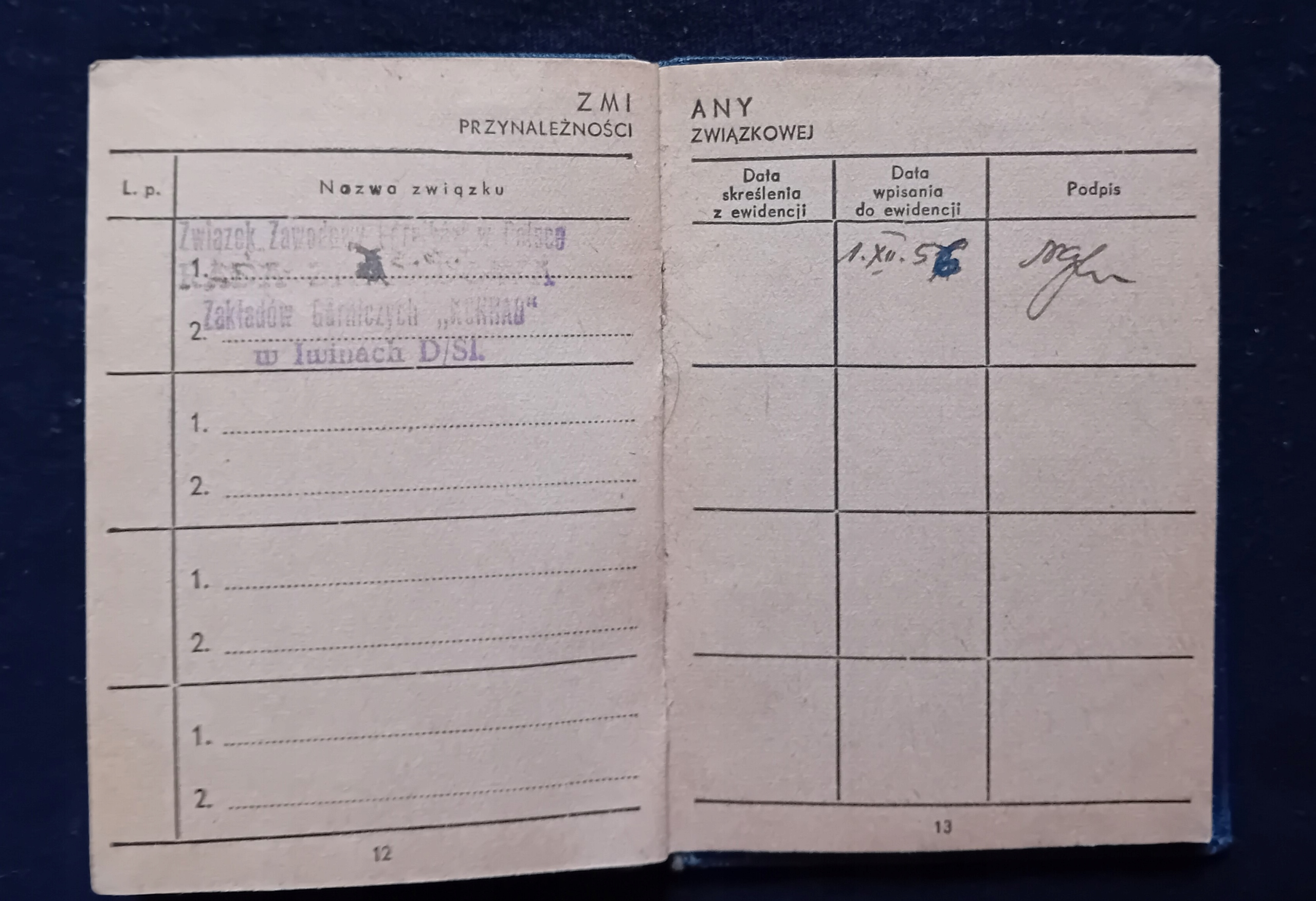 Членський квиток профспілки шахтарів, 1956 р., ПНР.