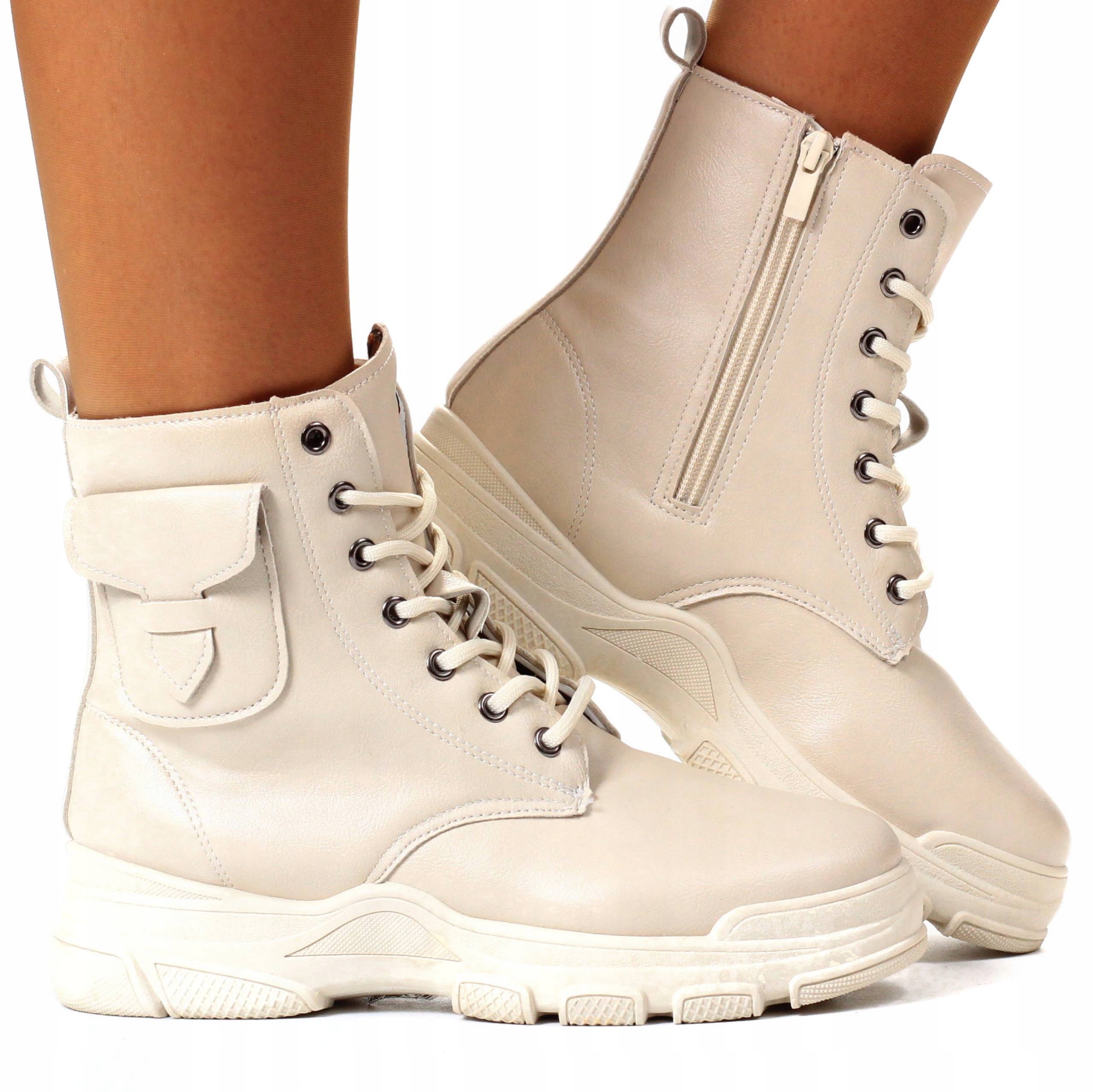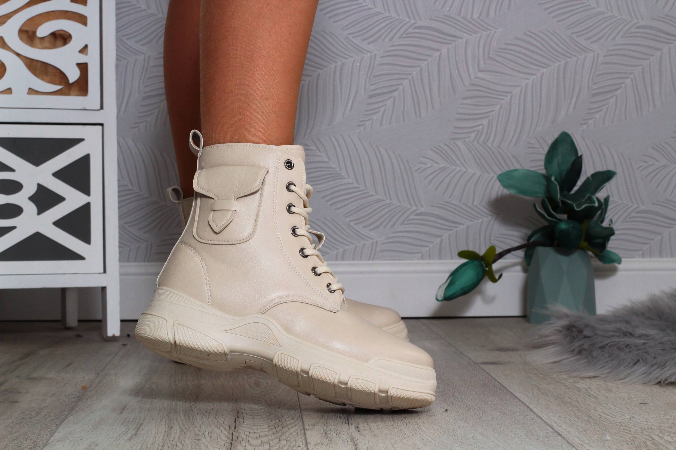 Черевики жіночі, чоботи-боввери бежевого кольору з декоративною кишенею на верху. 🔥 Мають делікатний утеплювач у вигляді поролону - ідеальний варіант для осені чи весни ❗ Застібаються на блискавку, додатково оснащені шнурками. Стійка товста підошва добре амортизує стопу та захищає від холоду.💗 Виготовлені з якісних матеріалів. Завдяки простому дизайну вони поєднуються з багатьма стилями. 💯