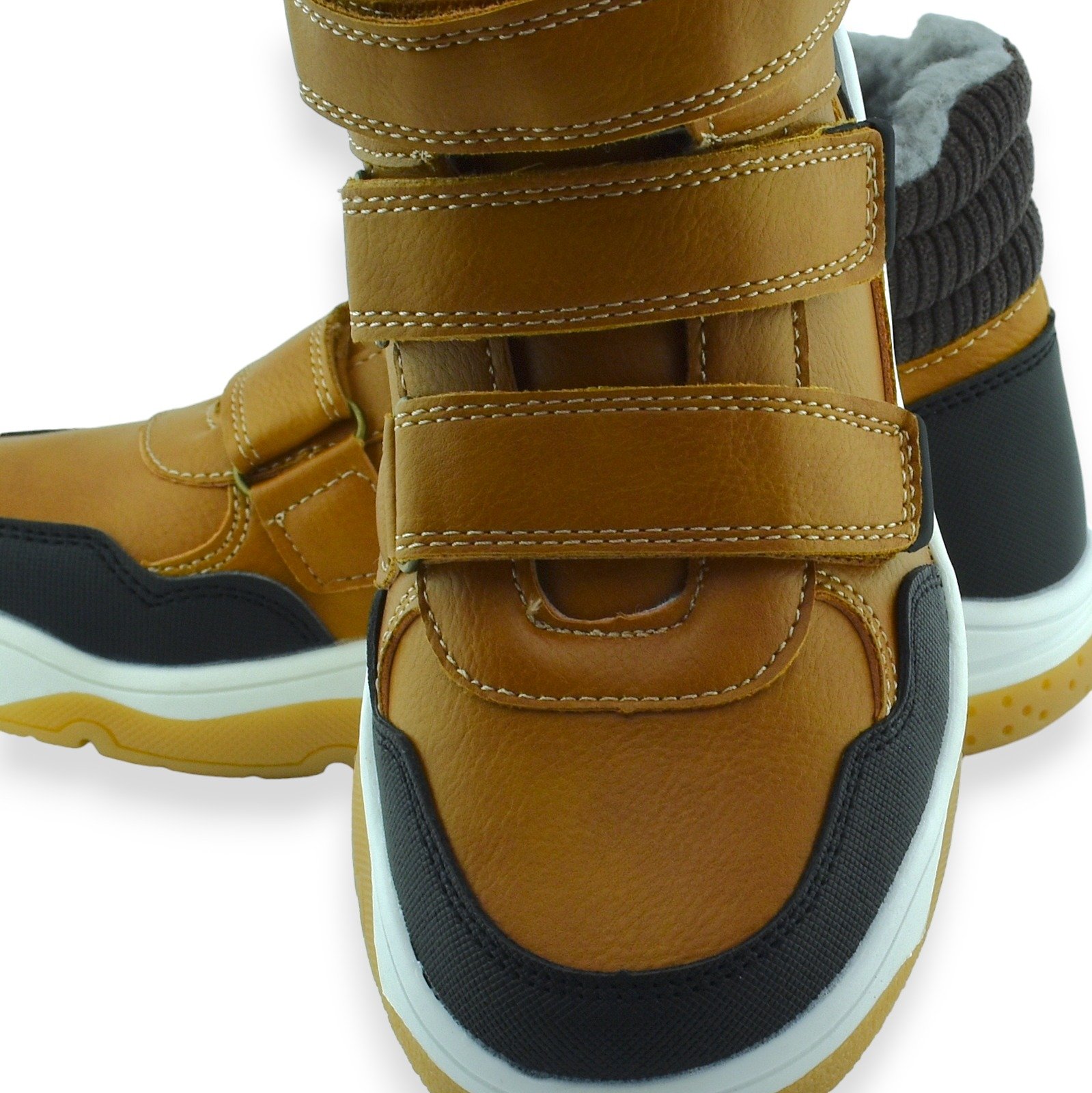 Черевики утеплені для хлопчика на сезон осінь-зима в спортивному дизайні. Високий верх застібається на липучку, всередині утеплений штучною овчиною. Взуття в модному дизайні та кольорі. Ідеально підходить для холодних днів у школі чи на прогулянці.