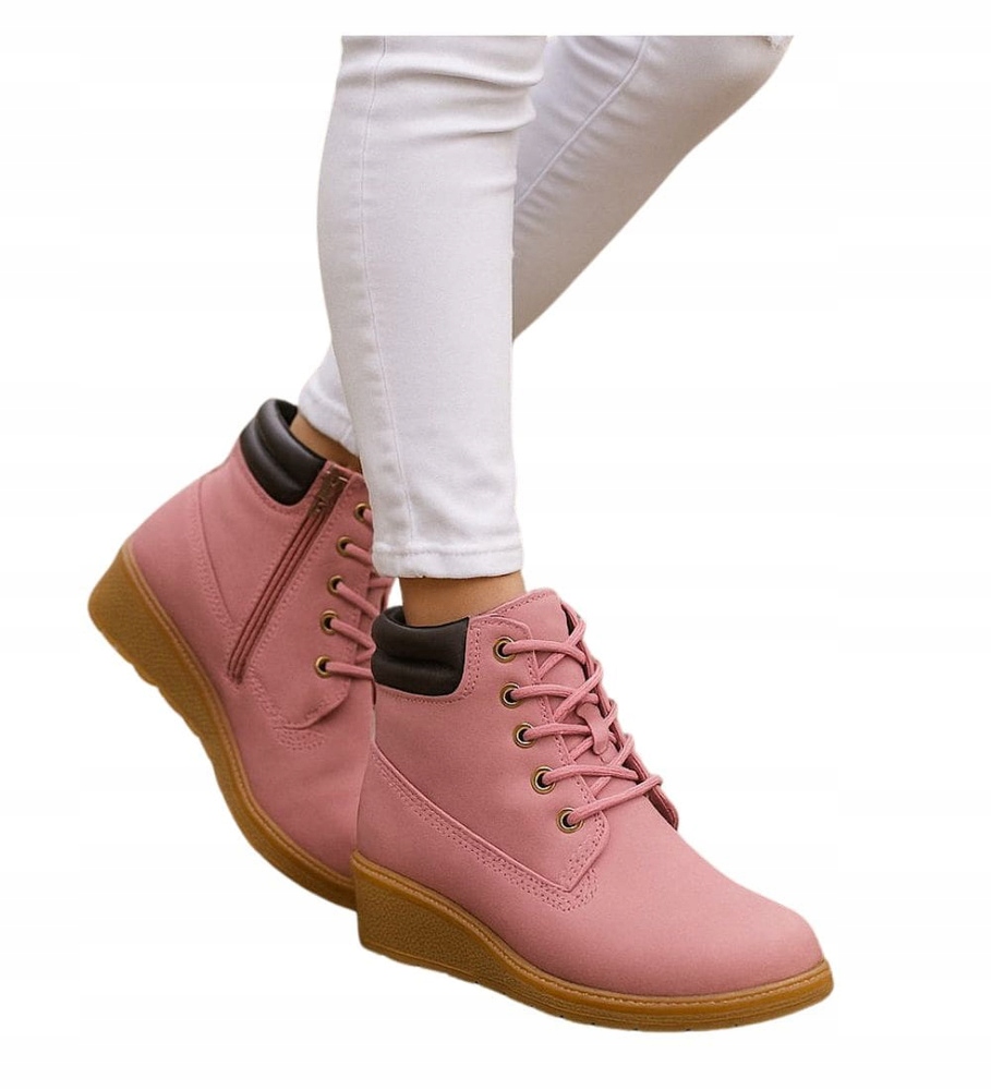 - ✅Черевики рожевого кольору оснащені блискавкою та шнурівкою.