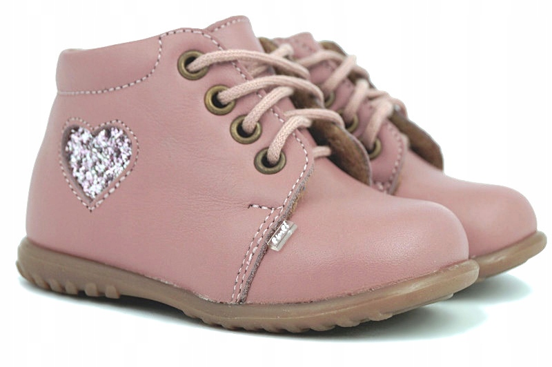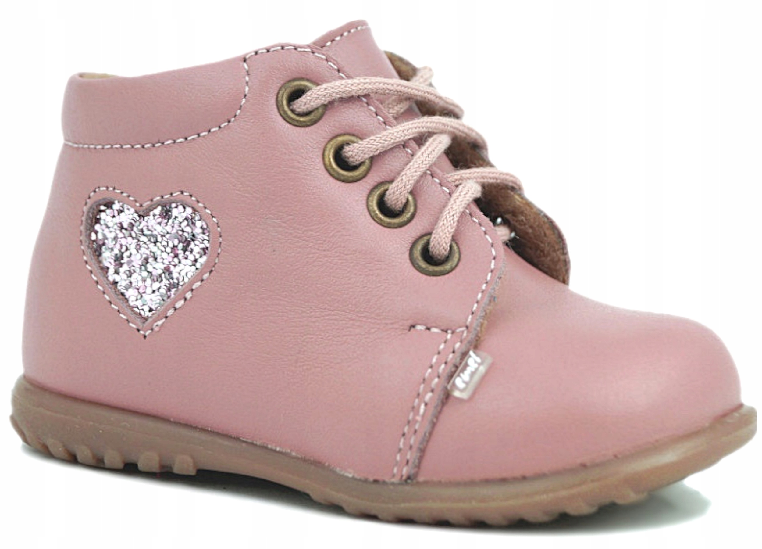 Дівчаче взуття Emel з сердечком. Виготовлений повністю з високоякісної натуральної шкіри, завдяки чому ніжні ніжки малюка забезпечують здорову вентиляцію та не викликають потертостей