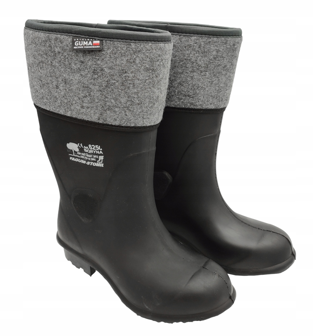ВЗУТТЯ ПОВСТЯНЕ 6250 BORYNA OB CI SRC/ FAGUM STOMIL. Робоче взуття класичне полотно. Призначений для людей, які працюють в умовах, де необхідний захист від вологи, бруду та холоду. Вони забезпечують тепловий комфорт. Виготовляється шляхом вулканізації в формах. Колір: чорний. Розмір: 39-47. Матеріал: гума + повсть. Конструкція: верхня висота близько 37 см, утеплюючий фетр всередині, фетровий комір оброблений окантовкою, гумовий верх до 2/3 висоти, стійка, добре виліплена підошва. Переваги: гарний профіль, термостійкість знизу, водонепроникність, протиковзка, легка в чищенні, комфорт і зручність використання. Застосування: підійдуть у кожному господарстві, лісництві, на будівництві в умовах, де стандартне спецвзуття не підійде, під час прибиральних робіт.