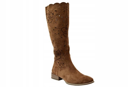 Чоботи жіночі ажурні темно-коричневі, M.Daszyński р39
