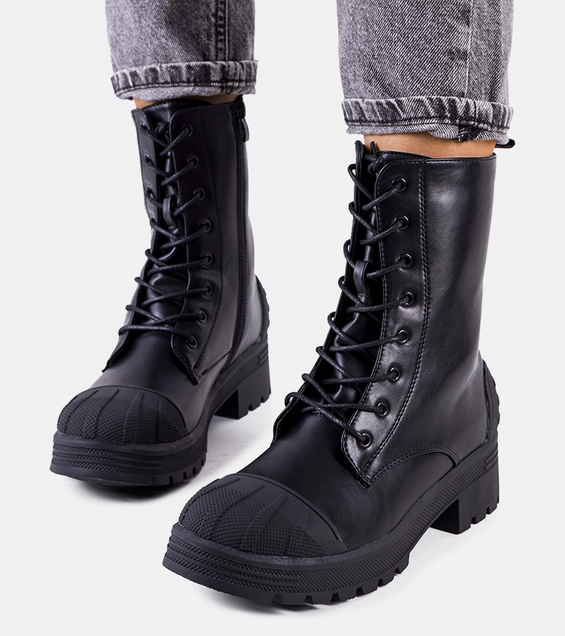 Черевики Tergaron на товстій підошві та протекторі. Верхівка вище щиколотки. Туфлі з екошкіри, злегка утеплені взуттєвою ковдрою. Застібається на блискавку з внутрішньої сторони верху, з додатковою шнурівкою спереду, що дозволяє регулювати окружність. Робочі однотонні - стильне доповнення до осінніх і зимових поїздок за місто. Нумерація стандартна, обирайте розмір.