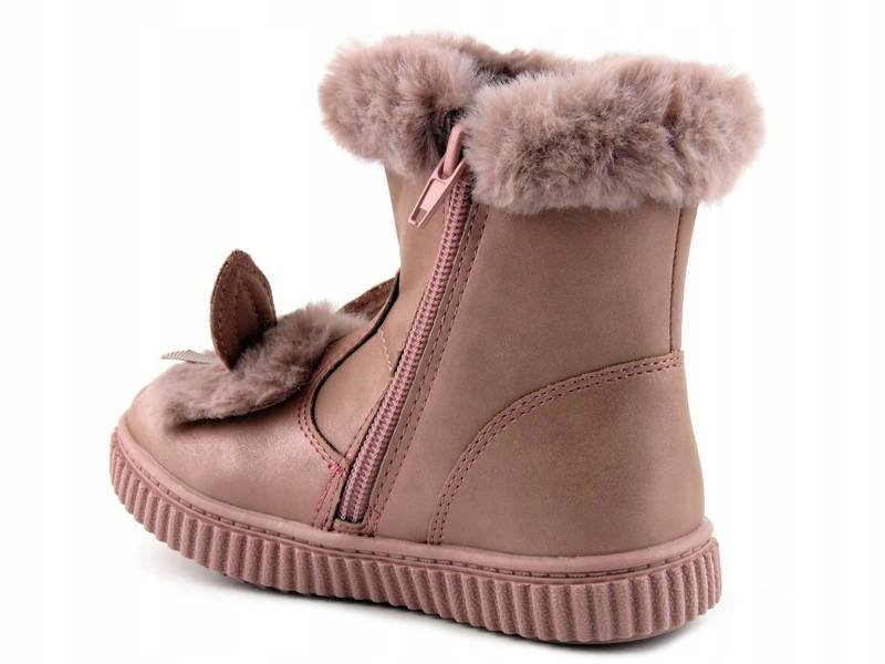 Рожеві чобітки прикрашені хутром і милими зайчиковими вушками.