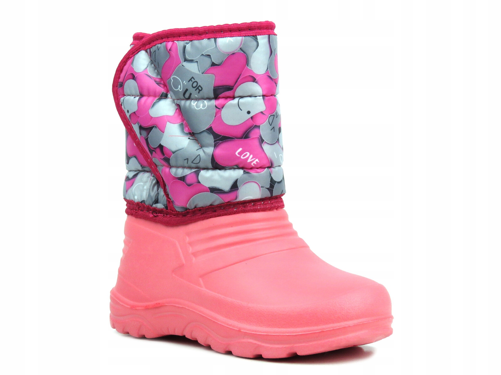 Рожеві та сірі сердечка на снігових черевиках сподобаються дівчатам.